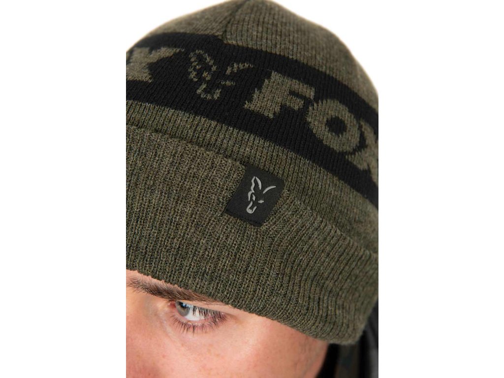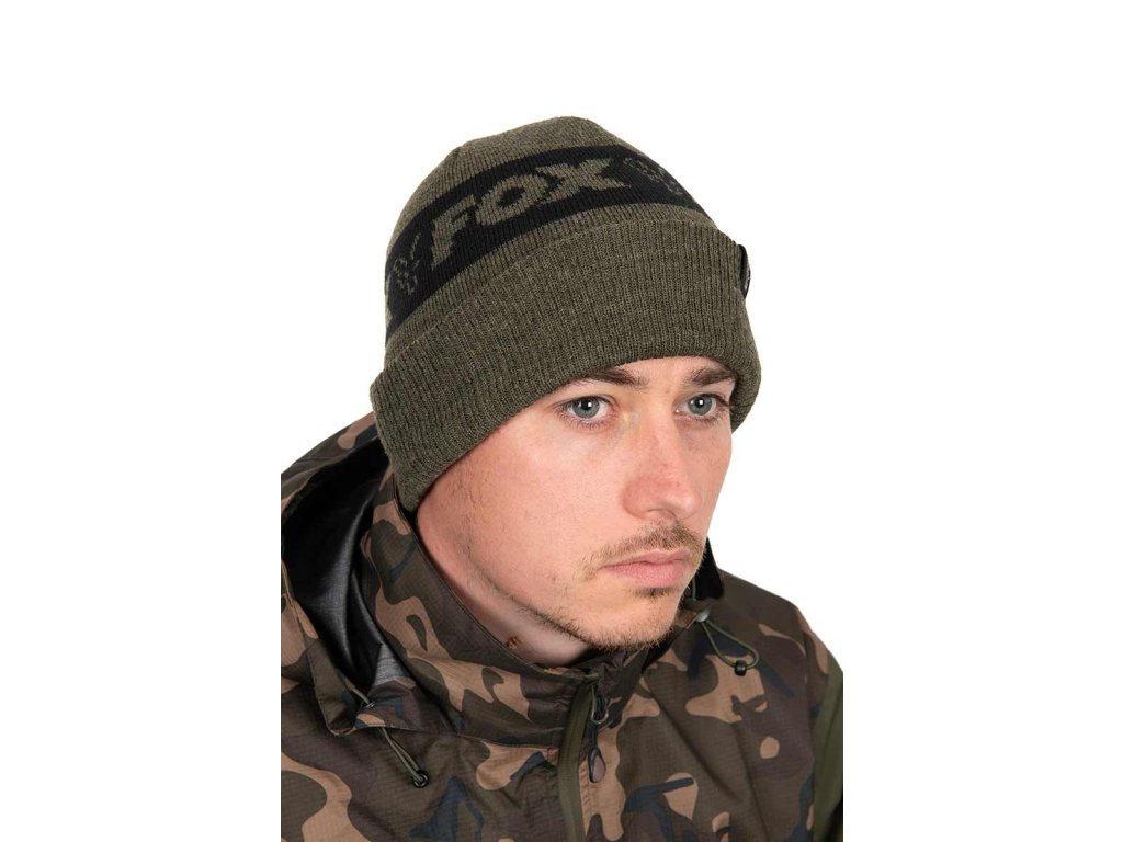 Zelená melírovaná čiapka s bambulou s čiernym emblémom Fox