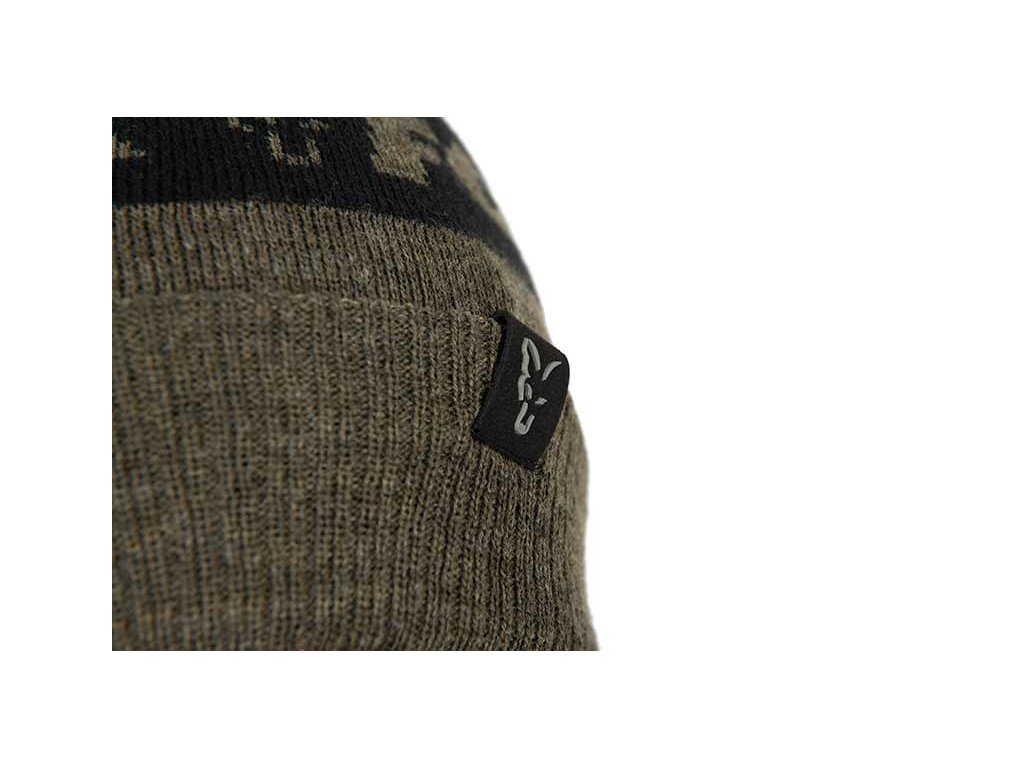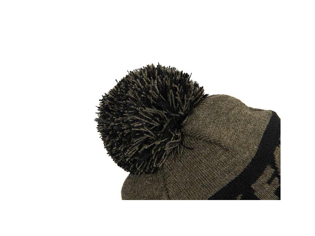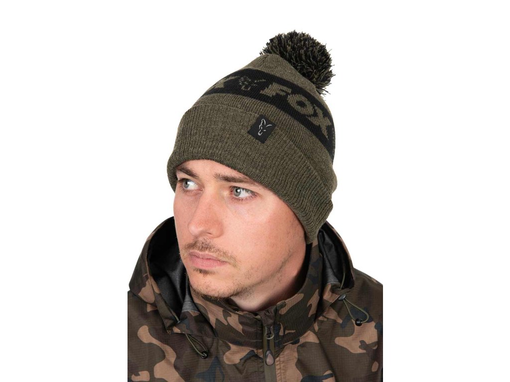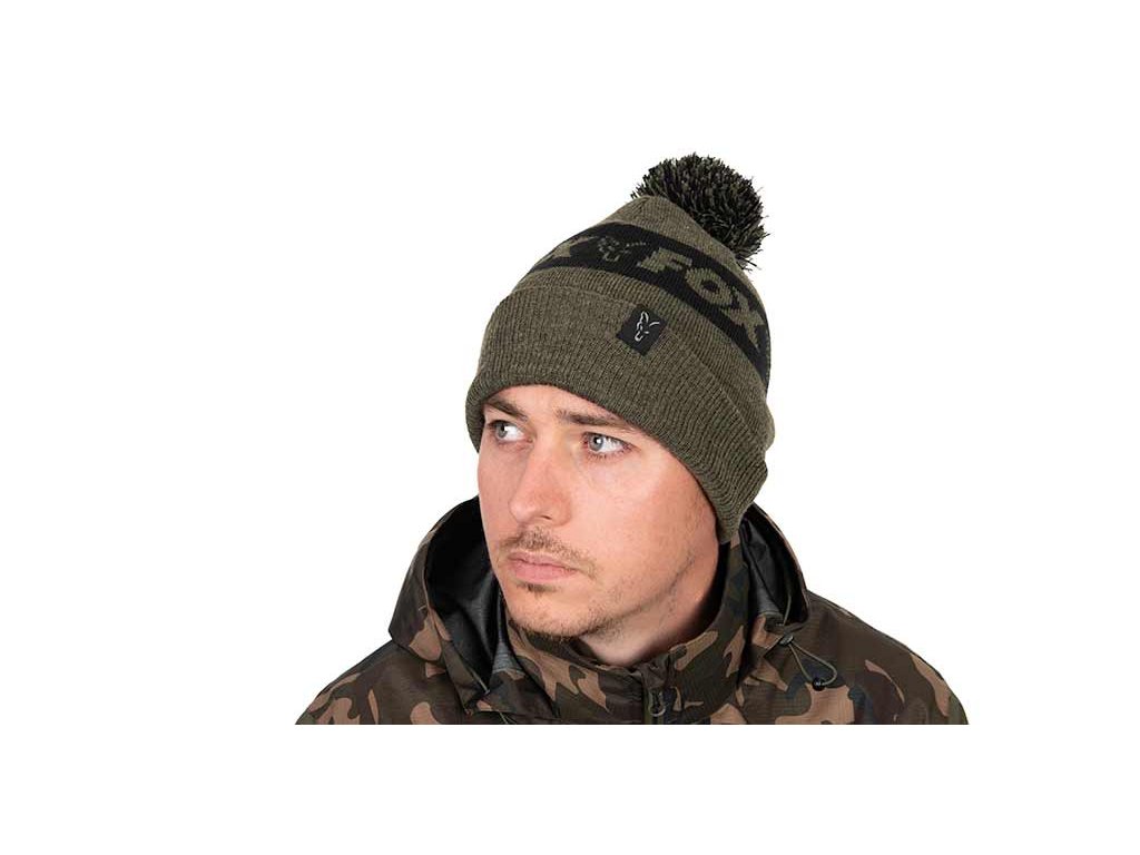 - Zelená melanžová čiapka s bambulou a čiernym emblémom Fox