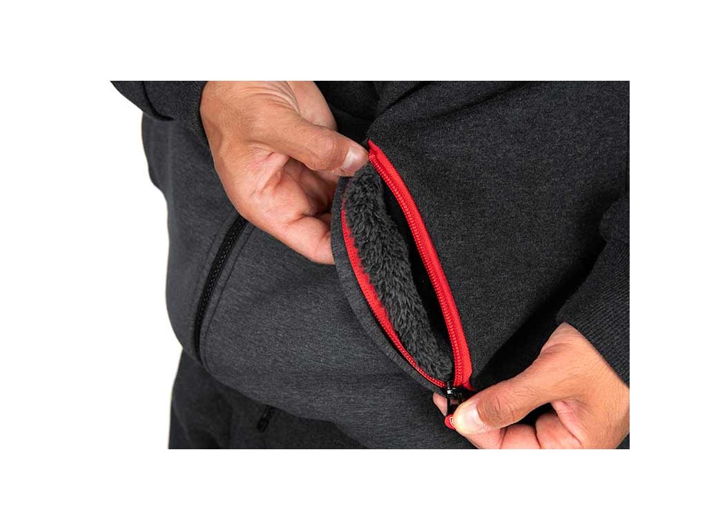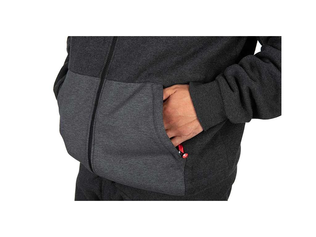 - Klasické strana: dvoucestný kontrastní šedý zip přední, kapsy na zip