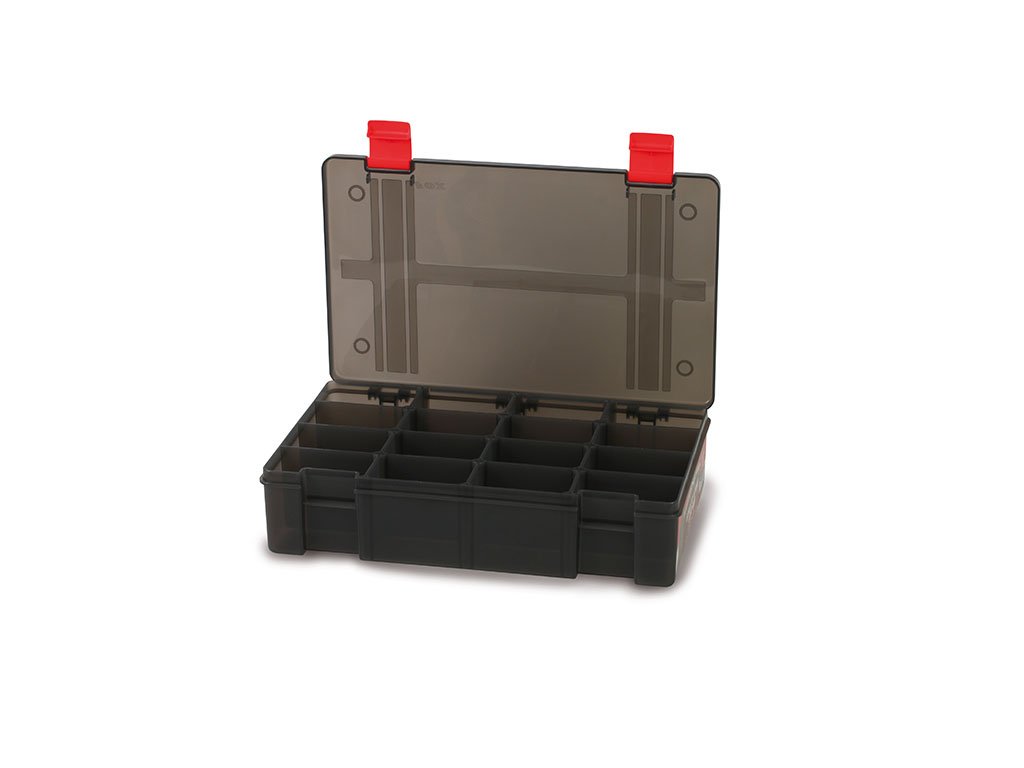 Vítězný koncept v ukládání potřebného příslušenství. Tyto krabice jsou vyrobeny z odolného plastu a mají nastavitelné jednotlivé přepážky. Jednotlivé části jsou samostatně odnímatelné a těžce zlomitelné. Kromě toho jsou boxy opatřeny UV filtrem, tudíž jsou vhodné pro skladování gumových nástrah. K dostání v pěti verzích. • Odolné proti kroucení • Silná odolnost • UV filtr zabřanuje bělení nástrah • Nerozbitné víko • Nastavitelné přihrádky • Stohovatelný