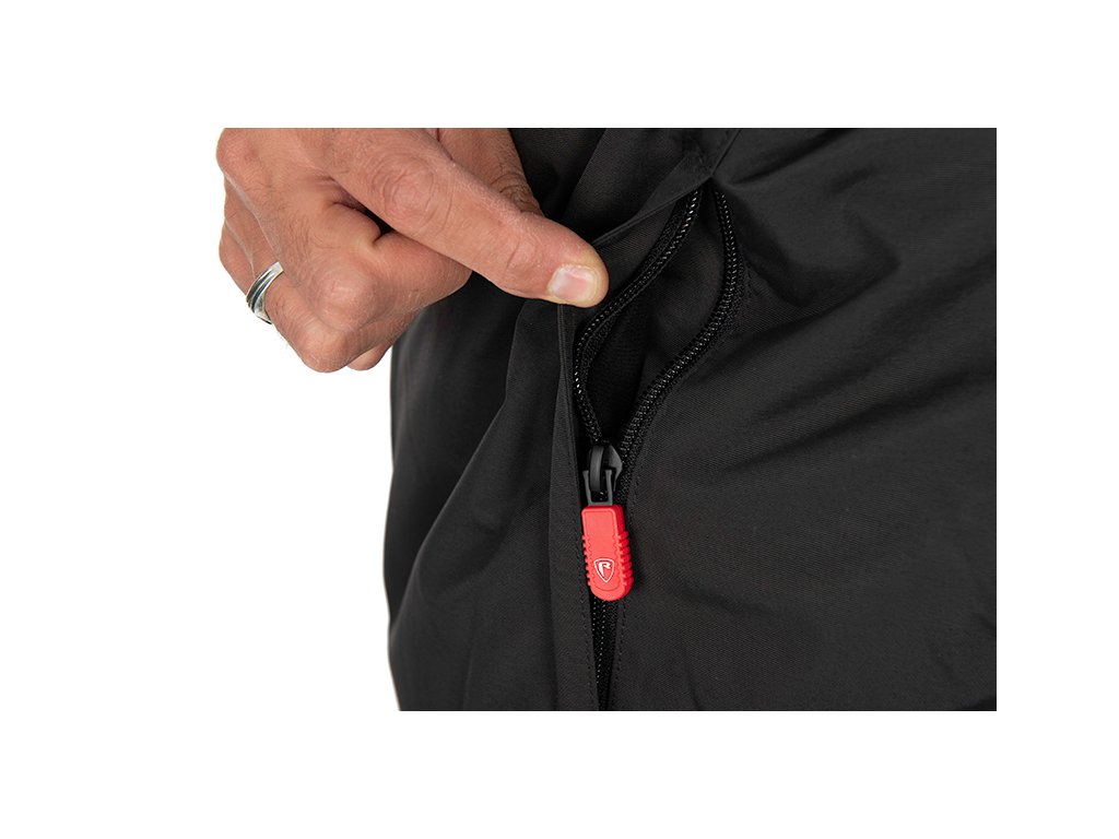 - Spodní strana nohavic opatřená na zip uzavíratelným rozšířením pro holínky, s dobře uchopitelnými táhly pro utažení kolem kotníků