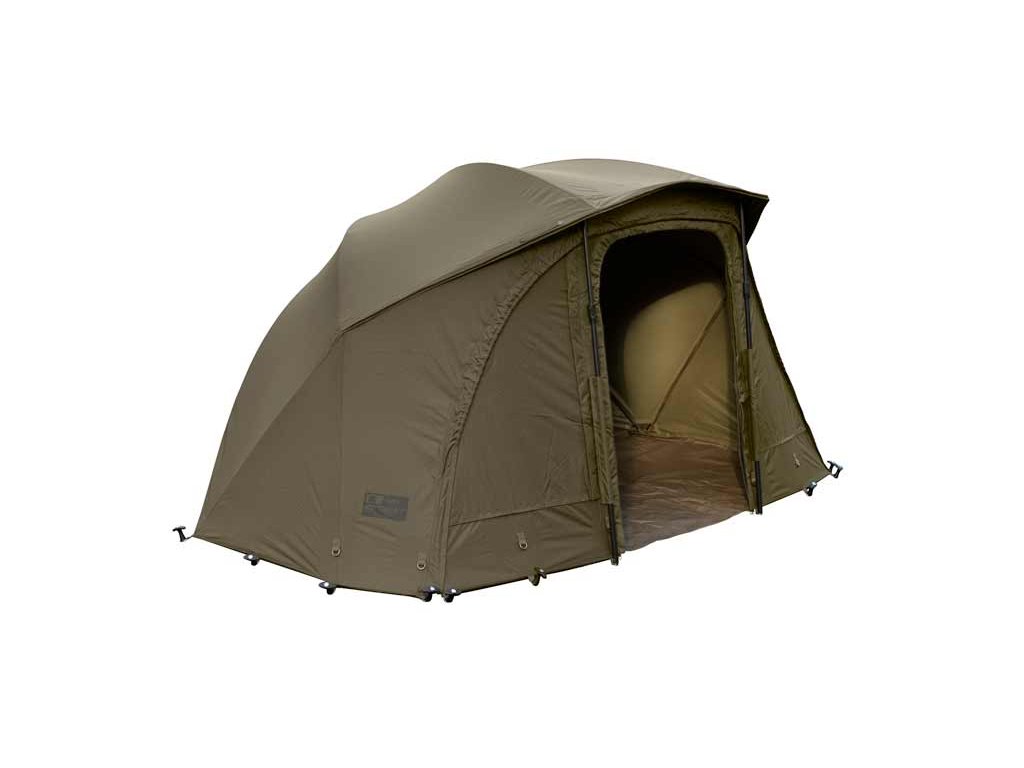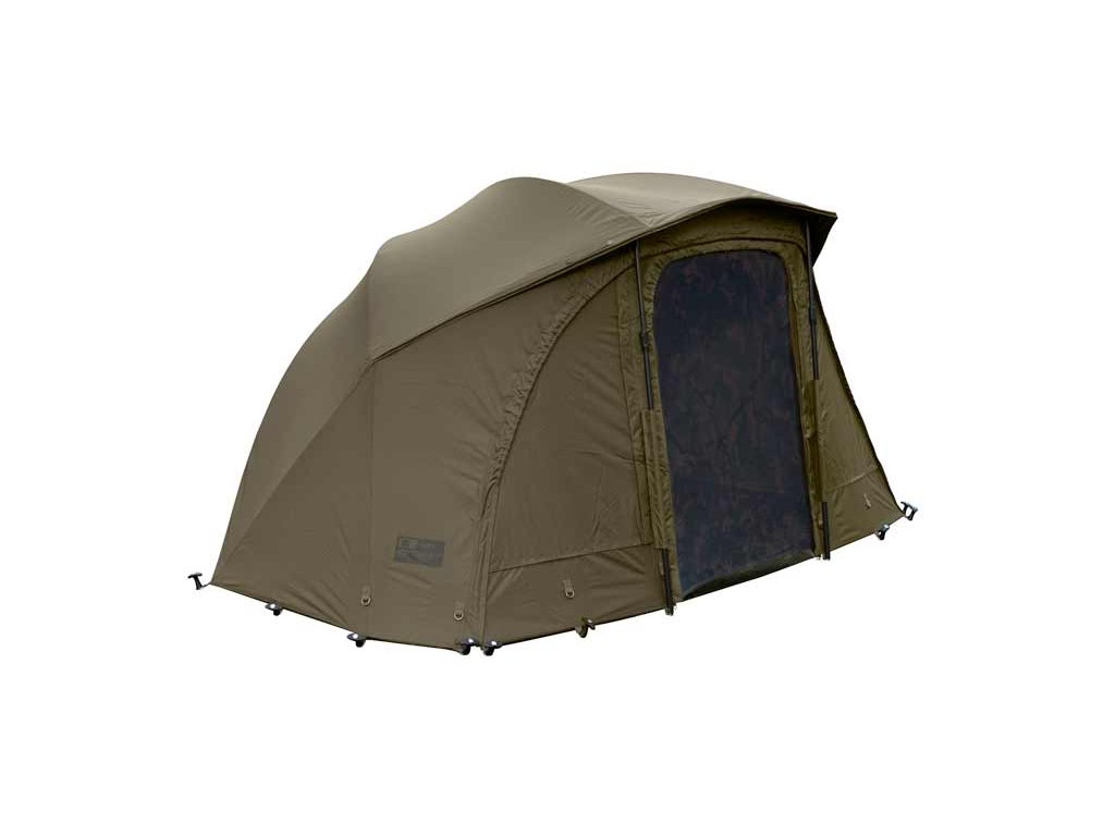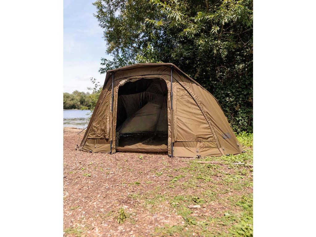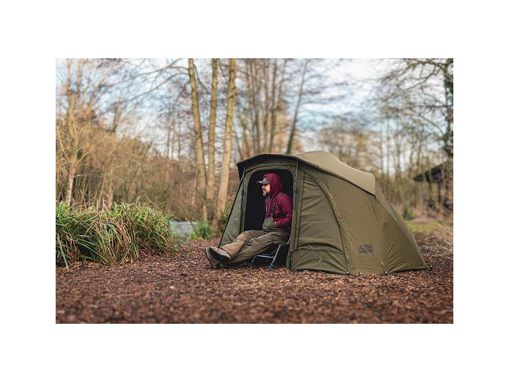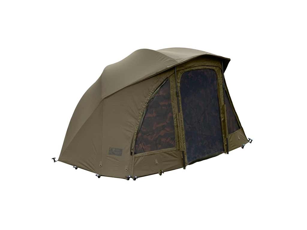 - Dodáva sa s predným odnímateľným panelom na zips, ktorý poskytuje tri možnosti dizajnu: priehľadné PVC, celá khaki a moskytiéra so vzorom Fox Camo.