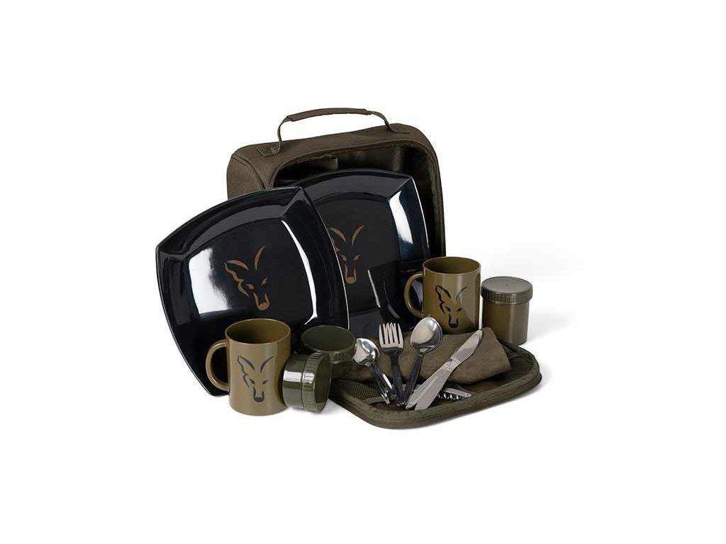 - 2 x nože, vidličky, lyžice a kávové lyžičky z nehrdzavejúcej ocele, 2 x čierny štvorcový tanier, 2 x zelená šálka Voyager, 1 x vývrtka, 1 x veľká skrutkovacia nádoba, 2 x malá skrutkovacia nádoba, 1 x utierka z mikrovlákna