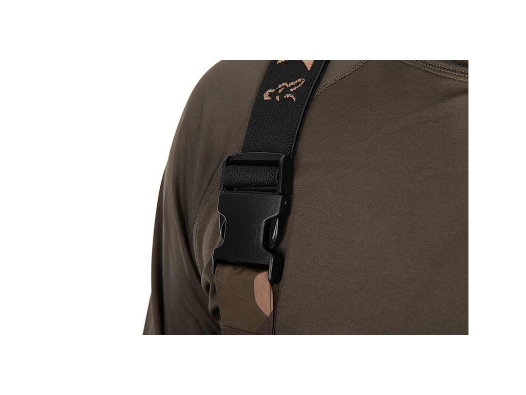 - Nohavice s elastickými šľapkami s logom Fox s rýchloupínacími prackami a čiastočne elastickým pásom