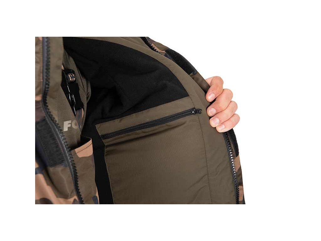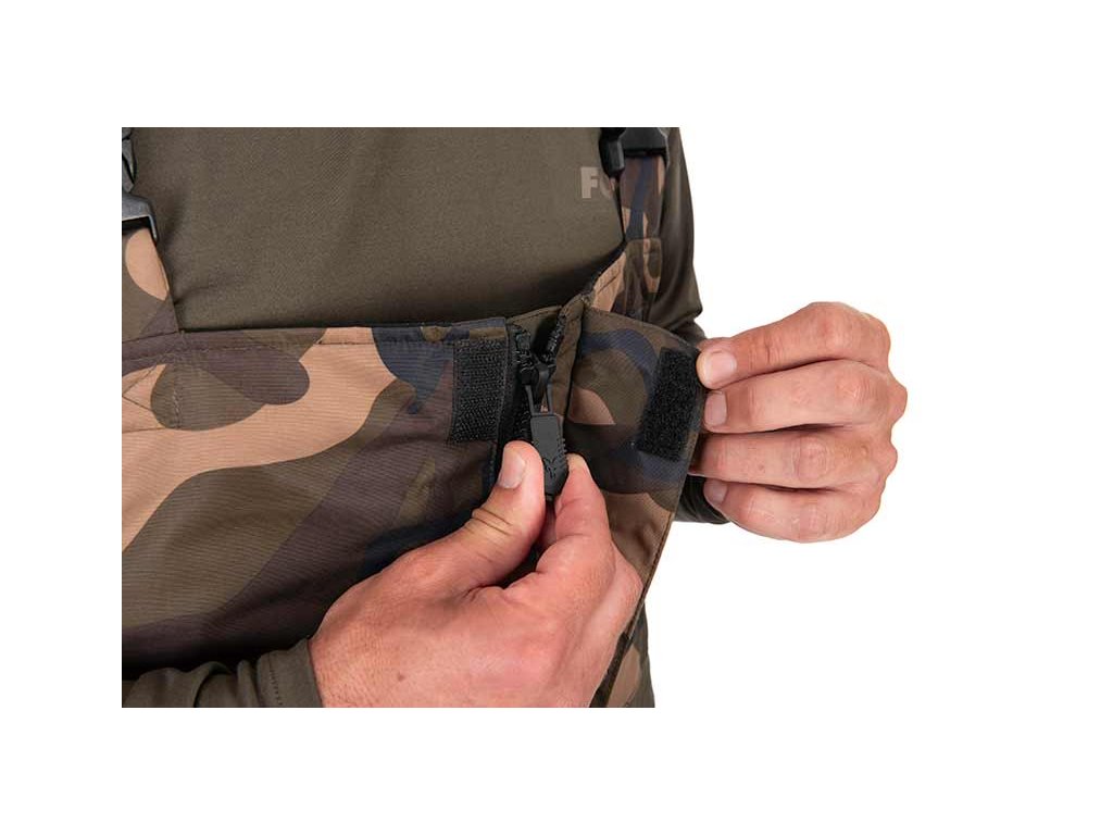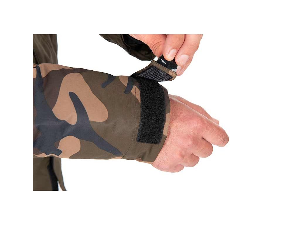 - Dvojcestný hlavný zips (s klopami) na bunde a nohaviciach