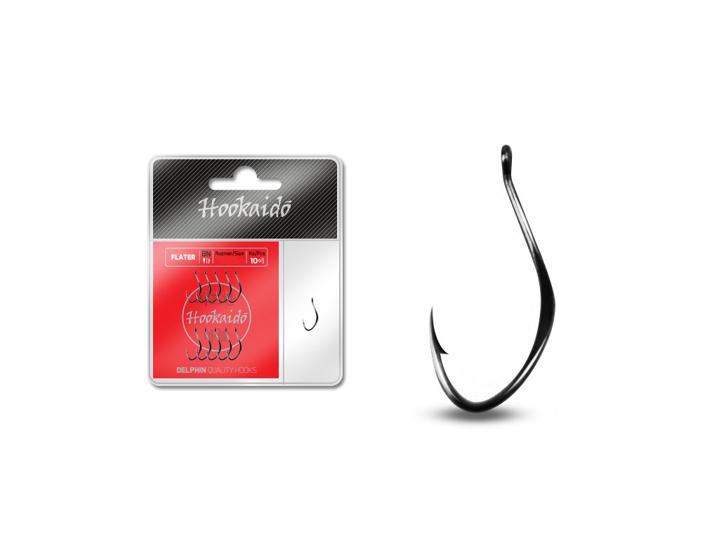 Háčiky červenej série Delphin HOOKAIDO sú určené pre každodenný rybolov. Sú veľmi odolné, ostrosť a tvar nestrácajú ani po dlhšom používaní a mnohých zdolaných rybách. Vyrobené sú len z materiálov vysokej akosti. Vďaka pestrosti tvarov a veľkostí si z tejto série vyberie každý rybár ten svoj! Asymetrické balenie 10+1 umožňuje rybárom jednoduchší výber potrebného háčika.Delphin HKD FLATER je veľmi pevným háčikom tvaru G. Vďaka splošteniu v oblúku je mimoriadne odolný voči otvoreniu. Výborne sa hodí na lov, pri ktorom je na háčik vytváraný mimoriadny tlak.