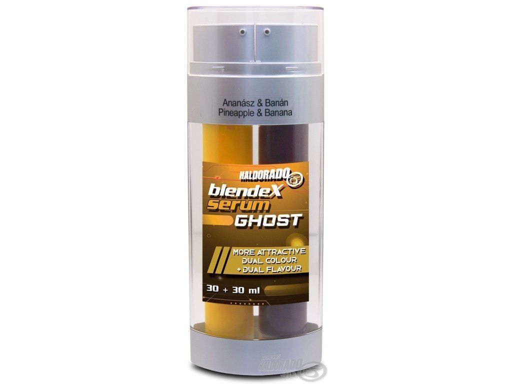 BlendeX Serum Ghost, rovnako ako jeho predchodca, ponúka možnosť používať dve rôzne príchute spolu a v skutočnosti príchute a variácie zostávajú rovnaké ako predtým. Jediné, čo sa mierne zmenilo, je obsah, pretože sme sa snažili príchutiam dodať ešte viac ich lákavých atraktorov, stimulátorov chuti do jedla a príjemnej chuti. Novinkou u príchute Ghost je aj vizuálne lákadlo, pretože tieto husté tekutiny vytvárajú vo vode efektný oblak rovnakej farby ako samotný koncentrát príchute. Príchuť Ghost možno vytlačiť na nástrahu, na naplnený košík alebo do PVA balíčkov pre dodatočnú príchuť a nástrahu, hoci jej efektívne použitie je obmedzené len vašou fantáziou! Samozrejme, že nerozpustí ani PVA vrecúška alebo sieťky. BlendeX Serum Ghost sa dodáva v rovnakej sedemzubej verzii ako jeho predchodca. Sú to Kalmár + Chobotnica, Jahoda + Med, Cesnak + Mandľa, Ananás + Banán, Kyselina maslová + Mango, TripleX (Veľký kapor + Kalmár + Frankfurtská klobása) a Kokos + Tigrí orech.