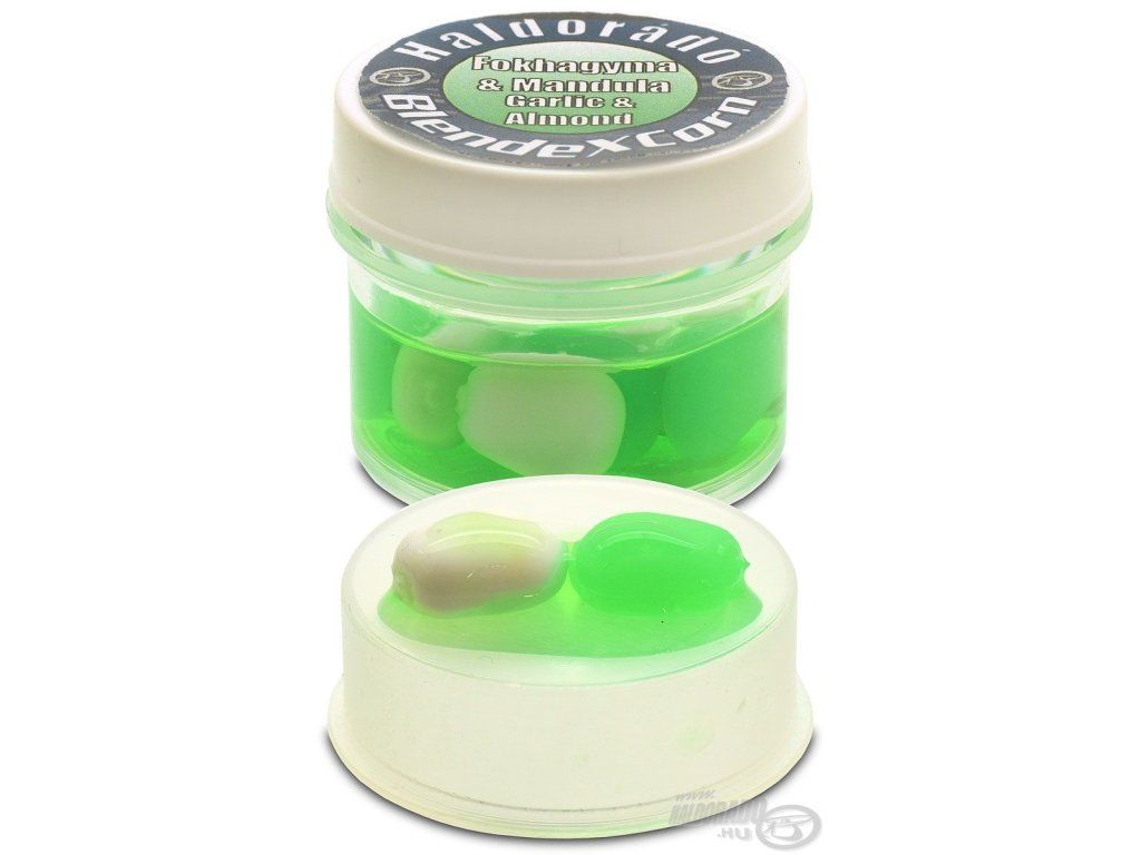 BlendexCorn je nový rad gumených kukuričiek (SpéciCorn) s výraznými farbami a intenzívnymi príchuťami populárnych nástrah BlendeX Pop Up, ktoré sú k dispozícii v 6 rôznych variantoch. Experimentálni rybári majú teraz na výber zo 7 rôznych farieb (citrónová, oranžová, biela, červená, zelená, fialová, čierna), so zaručeným chytaním nástrahy v KAŽDEJ situácii! Rovnaká veľkosť, štruktúra a vztlak ako pri štandardnej veľkosti SpéciCorn, každá nádobka obsahuje 10 jemných ochutených gumených kukuričných zrniek v dvoch rôznych farbách v závislosti od príchute. V tejto rodine sú k dispozícii všetky špeciálne a chytľavé farby. Najneobvyklejšie a najnezvyčajnejšie z nich sú azda fialová, modrá a čierna. Tieto nástrahy takmer "svietia" uprostred jasnej hromady potravín. Veľmi účinné sú aj v čistej priesvitnej vode, tradičné žlté, oranžové, červené farby sú už rybám podozrivé. No práve vtedy sa tieto netradičné farebné nástrahy obzvlášť oplatí použiť! Haldorado BlendeXCorn Cesnak & Mandle je jednou z najúspešnejších, chytľavých kombinácií príchutí, ktorá funguje po celý rok! Kukuričné zrná majú bielu a zelenú farbu. Pri love kaprov v studenej vode funguje ako bomba a v teplejších vodách je obľúbenou nástrahou amurov!Dodatočné parametre