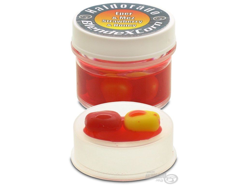 BlendexCorn je nový rad gumených kukuričiek (SpéciCorn) s výraznými farbami a intenzívnymi príchuťami populárnych nástrah BlendeX Pop Up, ktoré sú k dispozícii v 6 rôznych variantoch. Experimentálni rybári majú teraz na výber zo 7 rôznych farieb (citrónová, oranžová, biela, červená, zelená, fialová, čierna), so zaručeným chytaním nástrahy v KAŽDEJ situácii! Rovnaká veľkosť, štruktúra a vztlak ako pri štandardnej veľkosti SpéciCorn, každá nádobka obsahuje 10 jemných ochutených gumených kukuričných zrniek v dvoch rôznych farbách, v závislosti od príchute. V tejto rodine sú k dispozícii všetky špeciálne a chytľavé farby. Najneobvyklejšie a najnezvyčajnejšie z nich sú azda fialová, modrá a čierna. Tieto nástrahy takmer "svietia" uprostred jasnej hromady potravín. Veľmi účinné sú aj v čistej priesvitnej vode, tradičné žlté, oranžové, červené farby sú už rybám podozrivé. No práve vtedy sa tieto netradičné farebné nástrahy obzvlášť oplatí použiť! Haldorado BlendeXCorn Strawberry & Honey má veľmi príjemnú sladkú vôňu. Kukuričné zrná majú citrónovo žltú a červenú farbu. Jedna z najobľúbenejších, chytľavých príchutí v každej situácii a v každom ročnom období.Dodatočné parametre