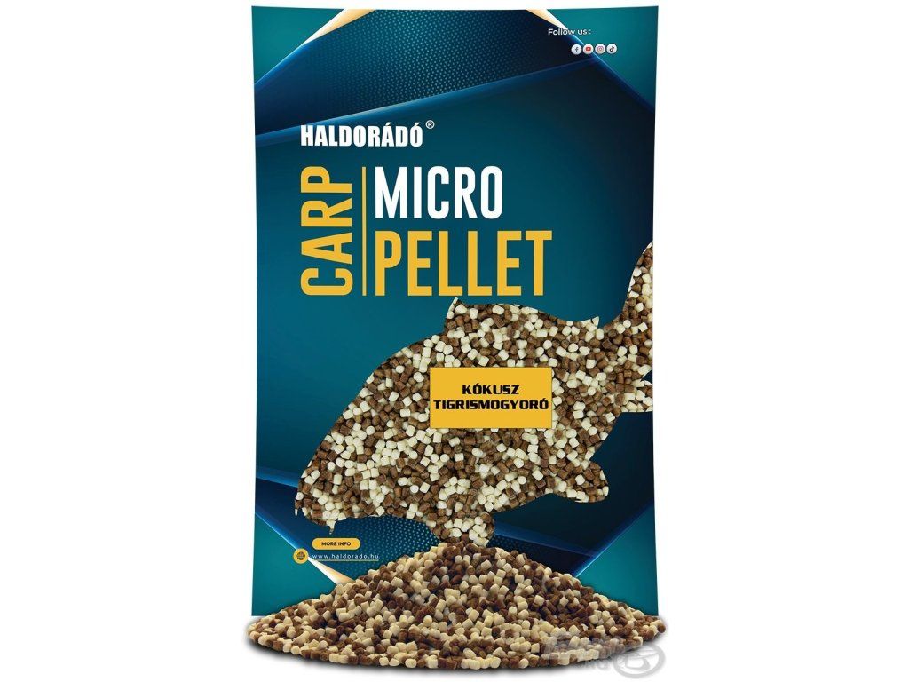 Táto produktová línia nie je v sortimente nová, je už dlho obľúbená a svoju kariéru začala ako prísada do radu Haldorado. V posledných rokoch však záujem o kŕmenie a mikropelety vzrástol natoľko, že sme si povedali, že ho vyčleníme z radu bežných výrobkov. Od roku 2024 bude k dispozícii ako Carp Micro Pellet, rad s obnovenou receptúrou, ešte kvalitnejší, farebnejší a chutnejší, ale za rovnakú cenu. Môže sa používať ako prísada na zlepšenie bežných krmív. Môže sa používať ako samostatná metóda alebo sa môže plniť do rebrovaného košíka. Keď sa umiestni do PVA vrecúška alebo halo, zmiešaný s chrumkavou nástrahou, obstojí aj pri love veľkých kaprov. Môže sa však použiť aj na vnadenie. k dispozícii je 10 druhov. Kokos + tigrí orech je jednou z "líderských príchutí" spoločnosti Haldorado na rok 2021, ktorá sa naplní v našom programe lovu veľkých rýb. Chytľavosť a sila Tigrieho orecha je nespochybniteľná, čo sa podarilo spárovať príchuťou, ktorá sa navzájom posilňuje. Tou nie je nič iné ako kokos. Spoločne tak vznikla harmonická nástraha s príjemnou chuťou a vôňou. Táto zmes peliet obsahuje biele a hnedé zrná v rovnakom pomere. Nielenže dobre vyzerá, ale je aj chytľavá!Dodatočné parametre