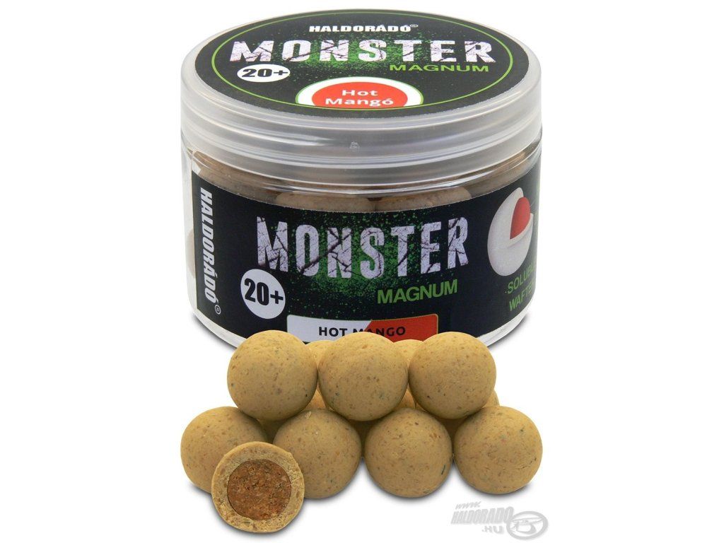Rad MONSTER nie je známy svojimi príjemnými vôňami, ktoré si ľudský nos môže vychutnať, ale jeho chytľavosť je nesporná! Okrem návnad a peliet je jasné, že tento sortiment ponúkame aj vo forme príchutí. MONSTER Magnum má všetky výhody rozpustných aj varených nástrah, pretože ide o nástrahu s vareným stredom a rozpustnou vonkajšou vrstvou! Vnútorné jadro je korkovo mletá varená nerozpustná nástraha s priemerom 14 mm. Vonkajšia vrstva je hrubá 3 mm a neustále sa rozpúšťa a uvoľňuje lákavé príchute. Vnútorná, varená časť návnady môže vydržať až 72 hodín, zatiaľ čo vonkajšia časť sa rozpúšťa 2 - 3 hodiny (v závislosti od teploty vody). Odporúča sa najmä na lov pri vysokom tlaku, vysokých úlovkoch, opatrný, kapitálny rybolov, ale prekvapivo sa osvedčila aj pri love na bielej vode, na Dunaji, pri vyberaní a chytaní kaprov v tejto oblasti! Jadro Spicy Liver je hnedé, rozpúšťacia vrstva je bordová, jadro Buttermilk & Sea Crab je čierne, rozpúšťacia vrstva je oranžová. Jadro Liver & Blood je červené, rozpúšťacia vrstva je hnedá. Jadro Kalmár & Brusnica má čierne jadro s ružovou rozpustnou vrstvou, jadro Červený losos má tmavohnedé jadro s tmavou vínovou rozpustnou vrstvou a jadro Pálivé mango má oranžové jadro s bielou rozpustnou vrstvou. Jadro larvy Tuna & Mosquito je hnedé a rozpustná vrstva je bordová. Nová príchuť 2026, Fire Tiger, má hnedé jadro a červenú vonkajšiu rozpustnú vrstvu.Dodatočné parametre