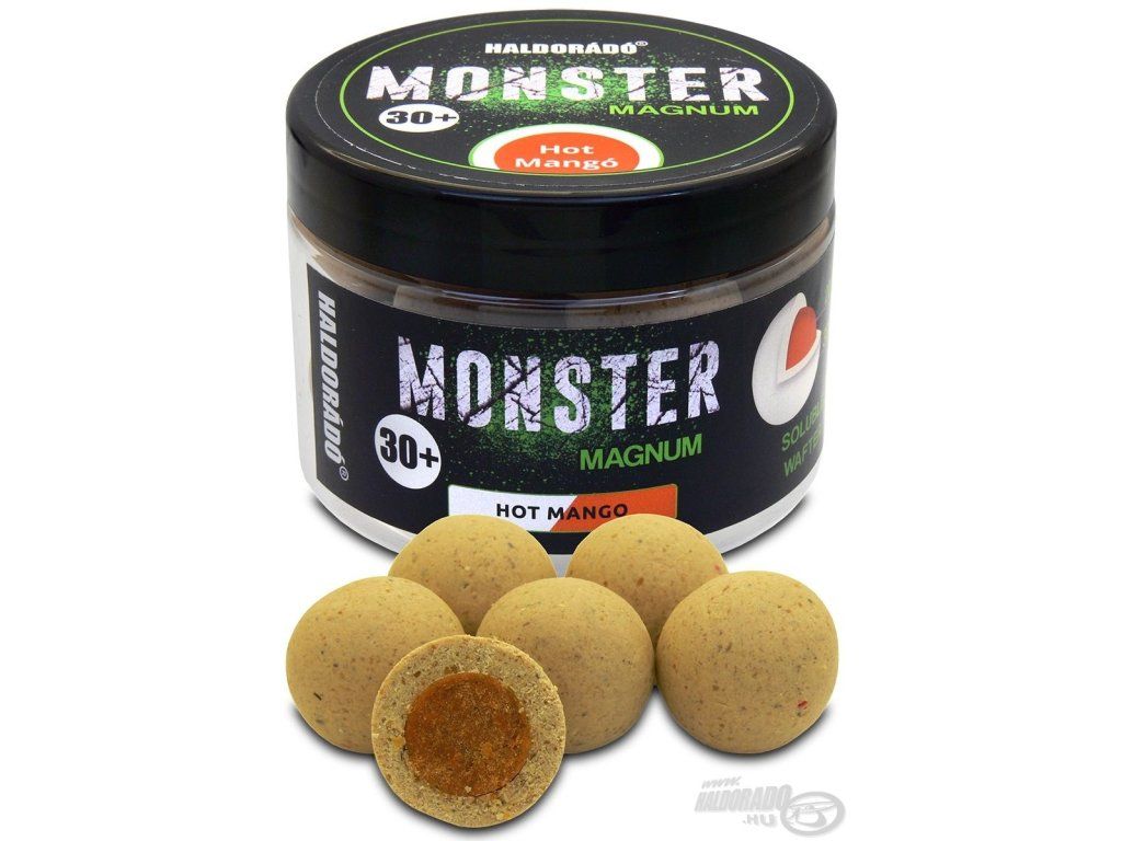 Rad MONSTER nie je známy svojimi príjemnými vôňami, ktoré si ľudský nos môže vychutnať, ale jeho chytľavosť je nesporná! Okrem návnad a peliet je jasné, že tento rad je dostupný aj vo forme príchutí a od roku 2024 budú návnady Magnum dostupné vo veľkostiach 30+ a 35+! MONSTER Magnum 30+ má všetky výhody rozpustných aj varených návnad, pretože ide o návnadu s vareným stredom a rozpustnou vonkajšou vrstvou! Vnútorné jadro je varená nerozpustná nástraha s priemerom 20 mm. Vonkajšia vrstva je hrubá 5 mm a neustále sa rozpúšťa a uvoľňuje lákavé príchute. Vnútorná, varená časť môže vydržať až 72 hodín, zatiaľ čo vonkajšia časť sa rozpúšťa 5-8 hodín (v závislosti od teploty vody). Veľmi atraktívna, veľmi výkonná nástraha, odporúčaná najmä na lov rýb pod vysokým tlakom, často lovených, opatrných, kapitálnych rýb. Je to jedna z "tajných zbraní" lovu veľkých kaprov na prívlač v Balatone! K dispozícii v šiestich lovných variantoch. Liver & Blood má červené semeno s hnedou rozpustnou vrstvou, Squid & Blueberry má čierne semeno s ružovou rozpustnou vrstvou, Hot Mango má oranžové semeno s bielou rozpustnou vrstvou a Tuna & Squid Larva má hnedé semeno s bordovou vonkajšou vrstvou a Tuna & Squid Larva má hnedé semeno s bordovou vonkajšou vrstvou.Dodatočné parametre