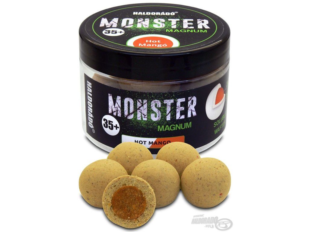 Rad MONSTER nie je známy svojimi príjemnými vôňami, ktoré si ľudský nos môže vychutnať, ale jeho chytľavosť je nesporná! Okrem návnad a peliet je jasné, že tento rad je dostupný aj vo forme príchutí a od roku 2024 budú návnady Magnum dostupné vo veľkostiach 30+ a 35+! MONSTER Magnum 35+ má všetky výhody rozpustných aj varených nástrah, pretože ide o nástrahu s vareným stredom a rozpustnou vonkajšou vrstvou! Vnútorné jadro je varená nerozpustná nástraha s priemerom 24 mm. Vonkajšia vrstva je hrubá 5 mm a neustále sa rozpúšťa a uvoľňuje lákavé príchute. Vnútorná, varená časť návnady vydrží až 72 hodín, zatiaľ čo vonkajšia časť sa vo vode rozpúšťa 5-8 hodín (v závislosti od teploty vody). Veľmi atraktívna, ťažko zasiahnuteľná nástraha, ktorá sa odporúča na naozaj veľké a opatrné ryby. Jedna z "tajných zbraní" lovu veľkých kaprov na prívlač v Balatone! Medzi nové príchute 2024 patria Spicy Liver jadro hnedé, rozpustná vrstva bordová, Buttermilk & Sea Crab jadro čierne, rozpustná vrstva oranžová. Liver & Blood má červené jadro s hnedou rozpustnou vrstvou, Squid & Blueberry má čierne jadro s ružovou rozpustnou vrstvou, Red Salmon má tmavohnedé jadro s tmavou bordovou rozpustnou vrstvou a Hot Mango má oranžové jadro s bielou rozpustnou vrstvou.Dodatočné parametre