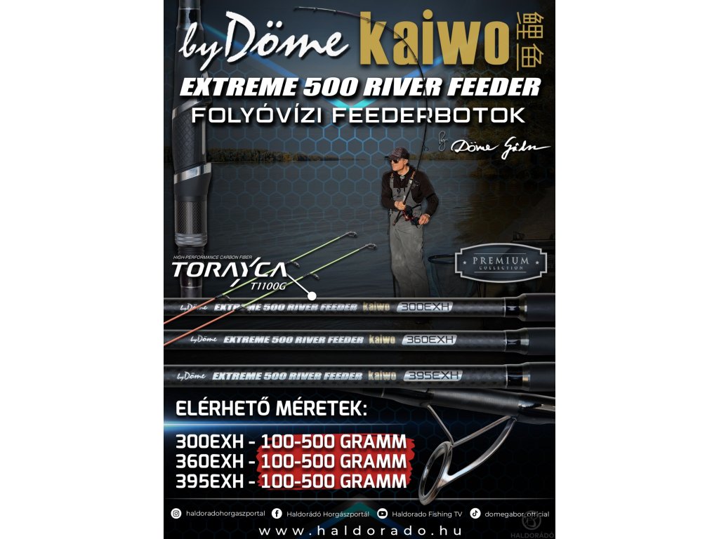 Táto rodina prútov sa teraz rozširuje o nových členov, konkrétne o verzie, ktoré sú určené do najťažších podmienok, na použitie na riekach. Rodina prútovBy Döme EXTREME 500 RIVER FEEDER Kaiwoje dostupná v troch veľkostiach. Majú dĺžku300, 360 a 395 cm. Najkratší člen je ideálny na rybolov v zalesnených oblastiach alebo na strmých skalných výbežkoch. Stredná veľkosť je určená na všeobecný rybolov, zatiaľ čo najdlhší člen môže byť užitočným spoločníkom pri dlhších hodoch!