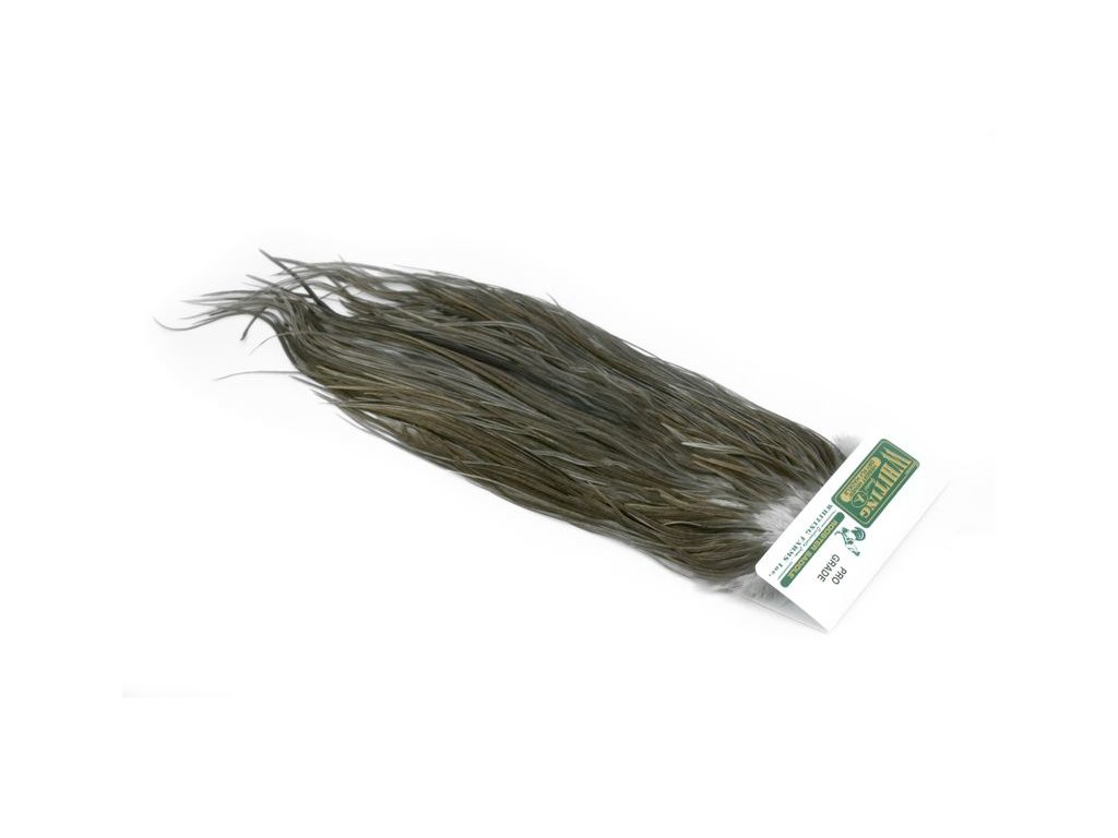 THE OLYMPIC GRADING SYSTEM Whiting's Olympic Grading System was developed to consistently grade capes and saddles across all dry fly product lines. Whiting Farms does not grade from harvest to harvest or “batch to batch”. We do not grade to push up or down pelts to meet certain sales requirements or financial obligations. We do not grade to meet consumer demand. Rather, our grading methodology remains consistent throughout the years and is independent of any bias that would skew the true value of the pelt. When grading our pelts, one rule-of-thumb always stands true: the quality level of the feather is always consistent. What does this mean? It means that each dry fly feather has a supple quill, void of twist, contains dense barbing and is greater than 85% web-free. If a pelt doesn’t meet this core criteria, the pelt is never sold in retail.