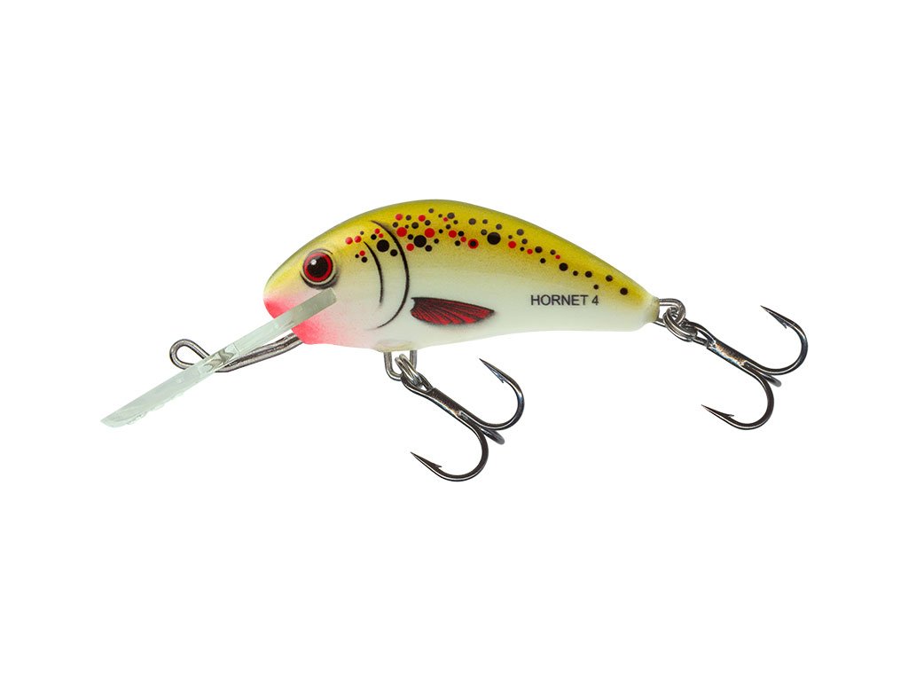 Salmo Hornet, ktorý časopis In-Fisherman Magazine uznal za jednu z najlepších nástrah na zubáča všetkých čias, je rovnako účinný na všetky druhy sladkovodných predátorov vo všetkých typoch vody. Rovnako ako každá remeselná rybárska nástraha od Salmo, aj každý Hornet je ručne vyrobený, maľovaný, testovaný v nádrži a vyladený, aby sa zabezpečilo, že každá nástraha spĺňa naše prísne štandardy hneď po vybalení. Hornet je dostupný v 5 veľkostiach a v rade realistických a vysoko kontrastných farieb.