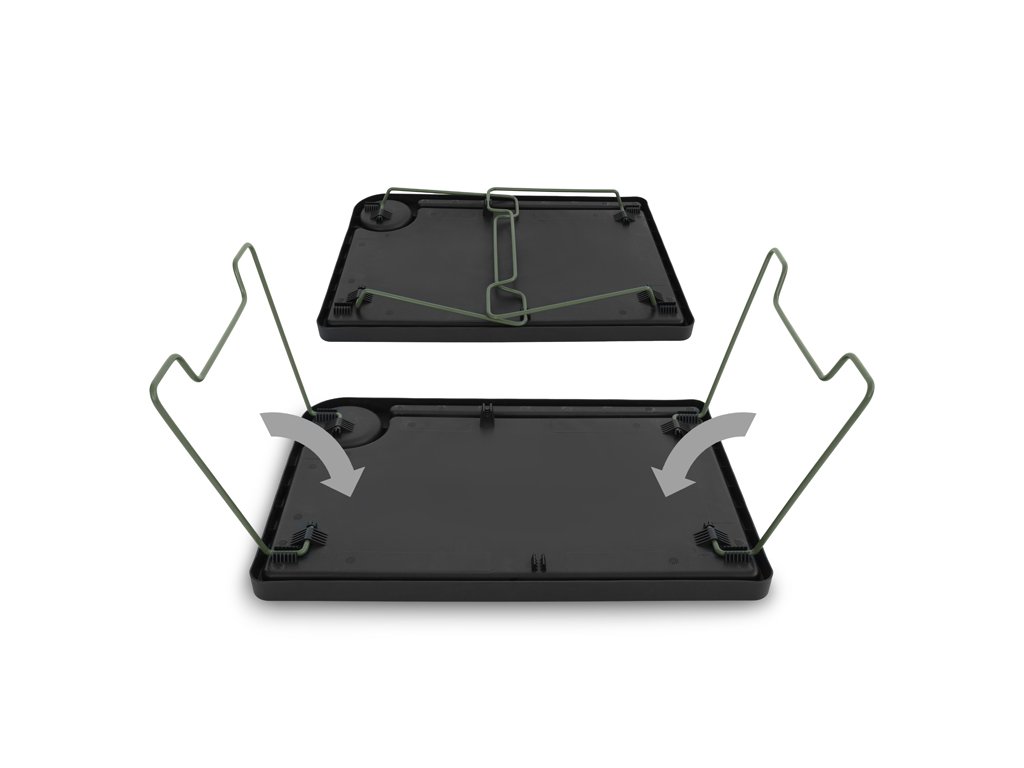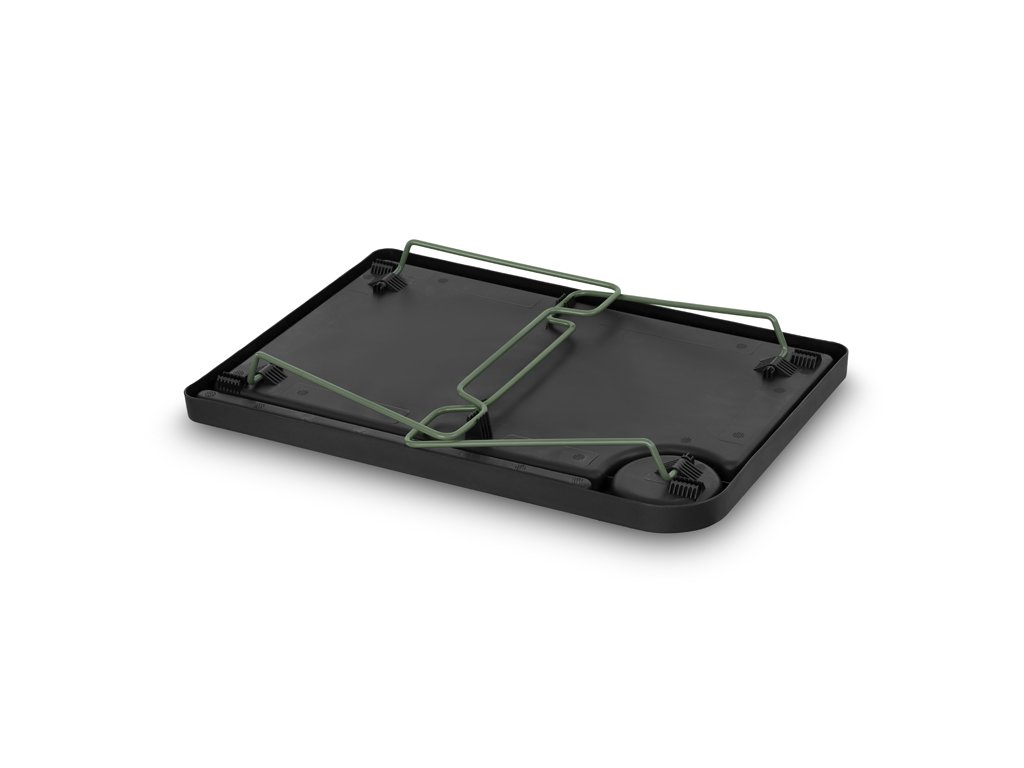 Stolík disponuje sklápateľnými nohami, vďaka čomu po ich zložení nadobúda veľmi kompaktné transportné rozmery. Praktické úchyty na spodnej strane dosky zabezpečujú fixáciu nôh v rozloženom aj zloženom stave, čím predchádzajú ich nechcenému pohybu počas manipulácie alebo prepravy.