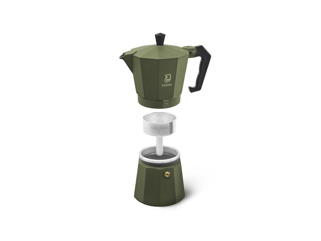 CoToGo sa skladá z troch, nad sebou umiestnených častí. Spodná nádobka slúži na naplnenie vodou. V prostrednej časti sa nachádza sitko, do ktorého sa vloží namletá káva a do vrchnej nádobky sa po zovretí vody dostáva hotová káva, pripravená na konzumáciu. Vďaka celokovovej konštrukcii je kávovar veľmi odolný, napriek tomu ľahký a dokonale skladný. Telo kávovaru výborne vedie teplo, čo zabezpečuje rýchly a rovnomerný ohrev vody. Manipuláciu uľahčuje komfortná plastová rukoväť, odolávajúca vysokým teplotám, pomocou ktorej nebude servírovanie kávy žiadnym problémom.Pokiaľ si teda v prírode radi vychutnávate dobrú kávu, tak práve CoToGo je produkt, ktorý by sa rozhodne mal stať súčasťou vašej výbavy.
