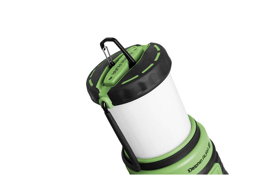 Multifunkčný lampáš Delphin AURA UC je neoceniteľným pomocníkom pri rybačke. Ponúka 3 režimy svietenia bieleho svetla, svietenie červeným svetlom (dlhšie podržanie tlačidla) a funkciu svetelného SOS (červeným svetlom). Lampáš je možné položiť na pevný povrch, vďaka pogumovanej podstave je veľmi stabilý. Okrem toho má vo vrchnej a spodnej časti karabíny, a tak si ho môžete zavesiť v stane či bivaku. Má masívnu rukoväť, prenášanie je veľmi pohodlné a praktické. AURA má dokonca funkciu "powerbanky", a tak si pomocou neho môžete dobiť napr. mobilný telefón. Lampáš sa nabíja pomocou priloženého USB-C kábla. Ten je možné vložiť do vodeodolného priestoru v spodnej časti lampáša, nehrozí tak jeho strata. Rovnakým káblom potom môžete dobíjať zariadenia s koncovkou USB-C. Tlačidlo zapínania slúži aj ako indikačná dióda vďaka ktorej zistíte stav nabitia akumulátora. Delphin AURA je dokonalým pomocníkom a vašim sprievodcom v tme.Technické parametre: