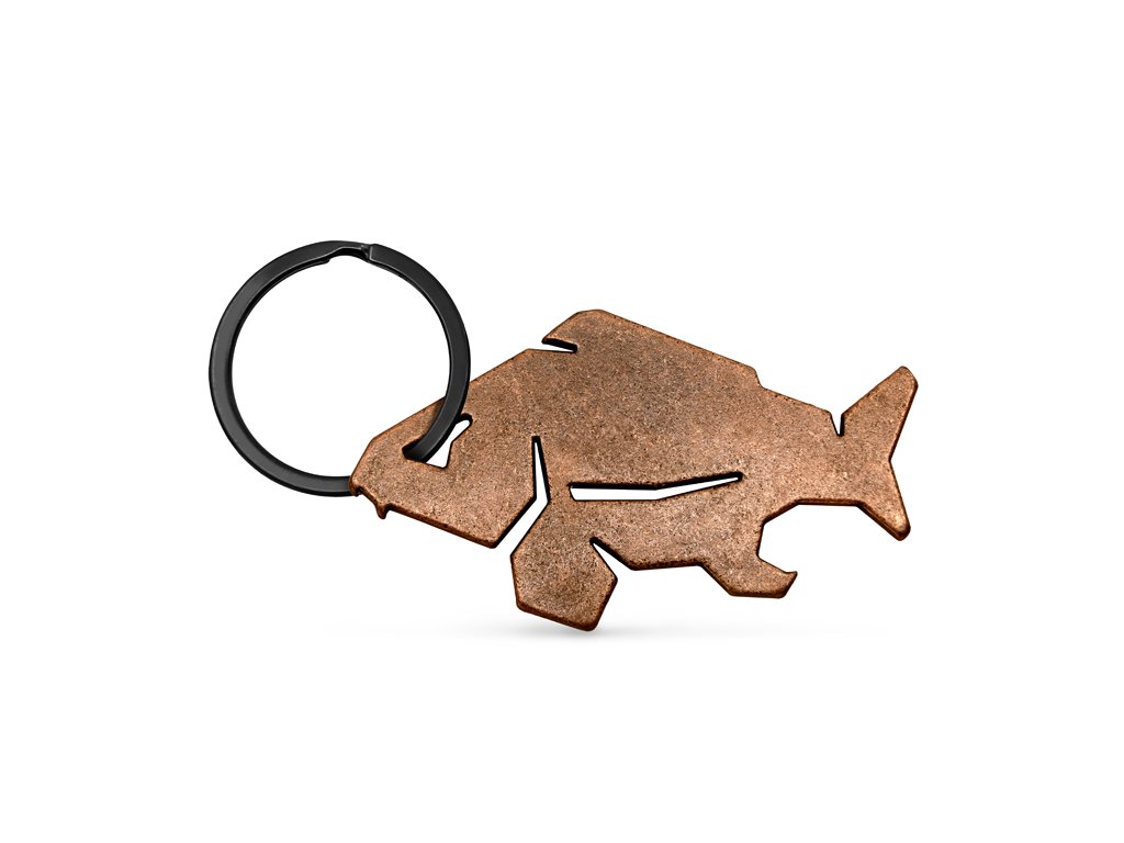 Originálna vychytávka, navrhnutá našimi dizajnérmi, slúžiaca ako imidžová kľúčenka a zároveň praktický otvárač na pivo a iné fľaškové nápoje. S týmto pomocníkom svoje kľúče tak ľahko nestratíte! Je vyhotovená v dvoch farebných variantoch – bronzová a strieborná. Vďaka jedinečnému dizajnu v tvare kapra, kľúčenka poteší všetkých priaznivcov kapráriny, ale aj iných rybárov.Celkový rozmer: 6,8x3,8cm