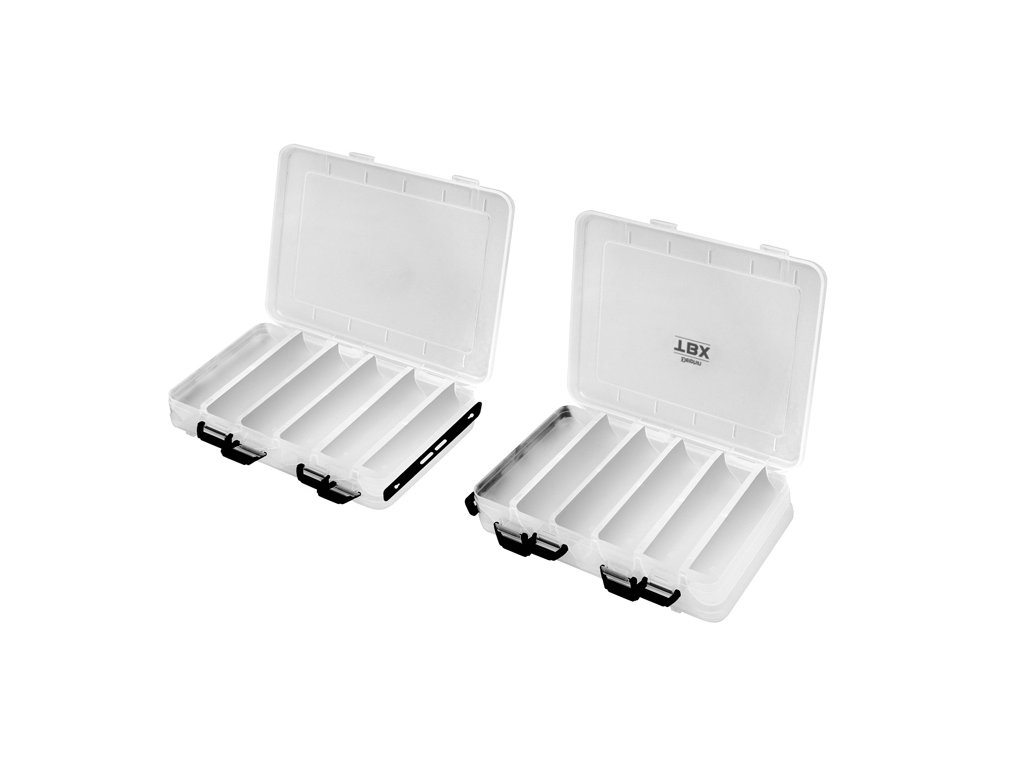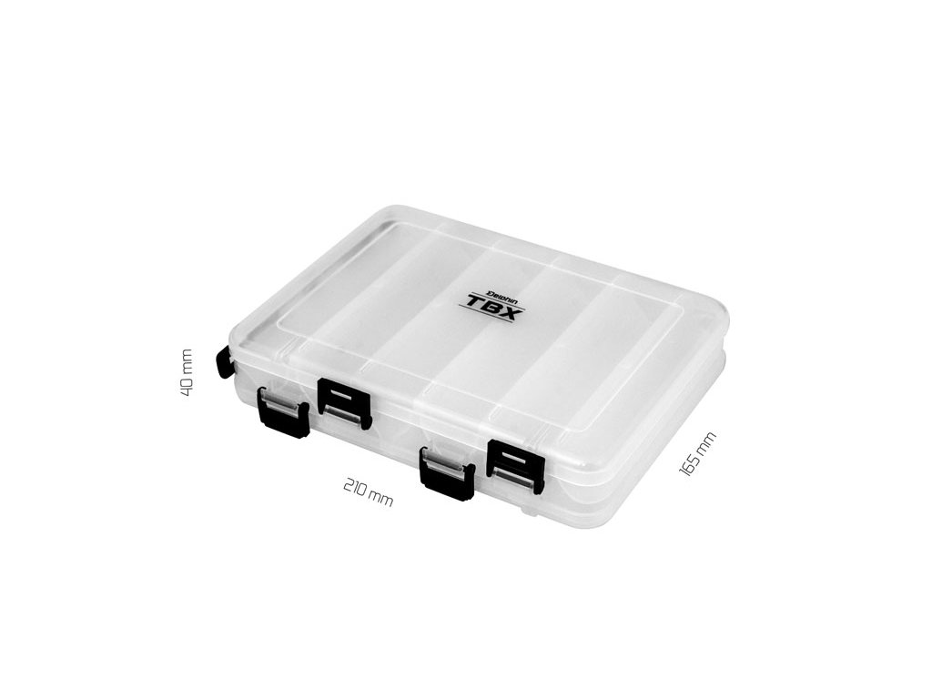 TBX Duo 210-12P Clip je multifunkčná krabička určená na uloženie voblerov a rybárskeho príslušenstva. Vyrobená je z transparentného plastu, takže máte vždy prehľad o uložených veciach vo vnútri krabičky. DUO znamená dva oddelené úložné priestory a to jeden z vrchnej a druhý zo spodnej časti s dômyselným otváraním. Vybavená je praktickými externými klipmi z čierneho plastu. Má zabudovanú skladateľnú rúčku pre jednoduchší transport.Technické parametre: