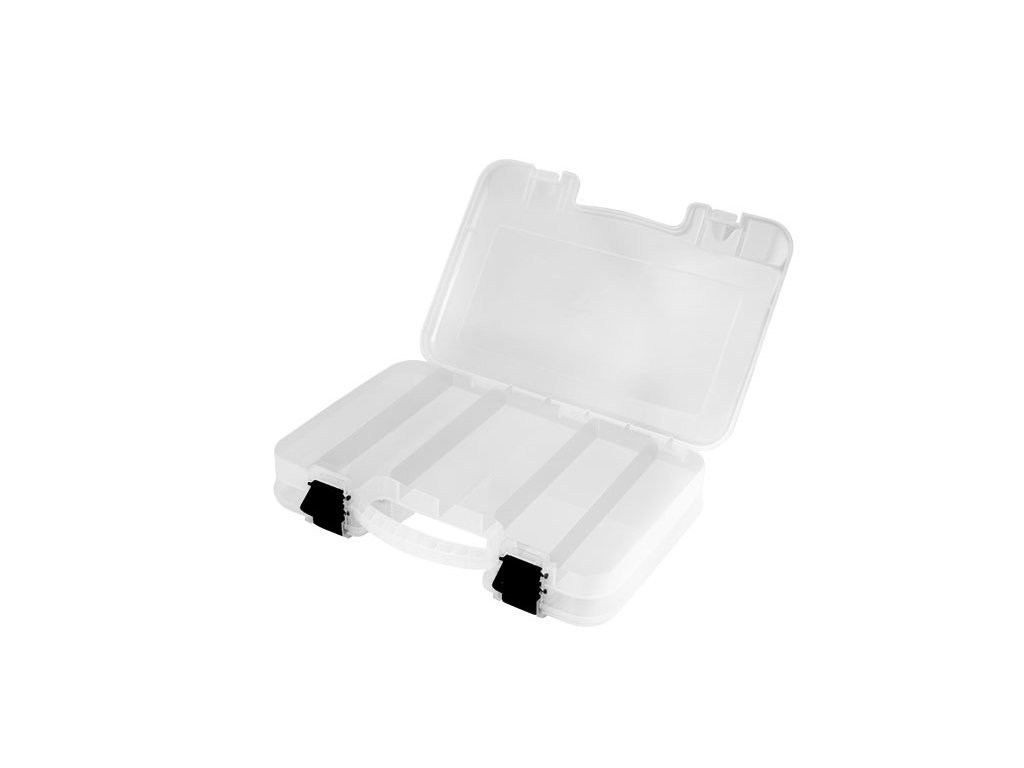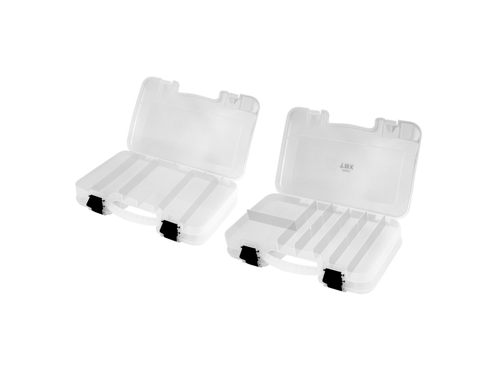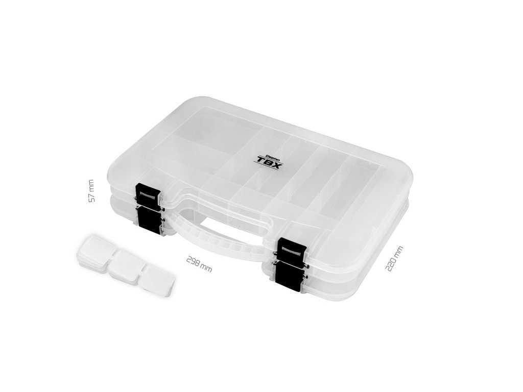 TBX Duo 298-12P Clip je multifunkčná krabička určená na uloženie rybárskeho príslušenstva. Vyrobená je z transparentného plastu, takže máte vždy prehľad o uložených veciach vo vnútri krabičky. DUO znamená dva oddelené úložné priestory a to jeden z vrchnej a druhý zo spodnej časti s dômyselným otváraním. Vybavená je praktickými externými klipmi z čierneho plastu. Má zabudovanú pevnú rúčku pre jednoduchší transport.Technické parametre: