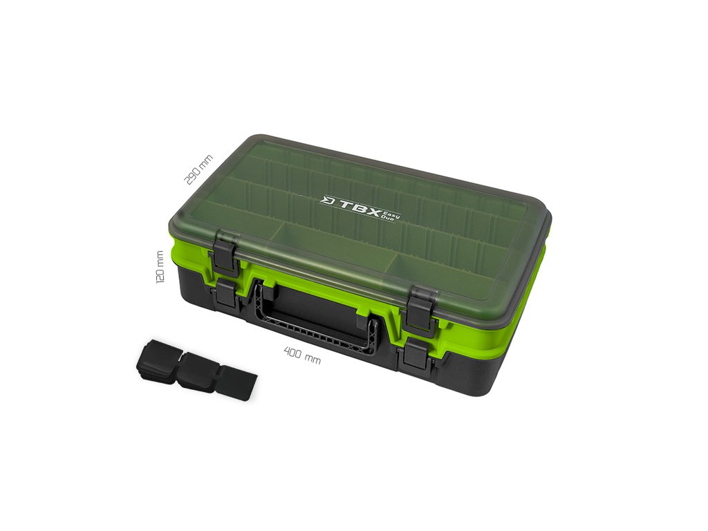 Delphin TBX EasyDuo je prakticky riešená krabica s úchopom na spôsob kufríka s dvoma oddelenými priestormi na odkladanie. Dokonca ju môžete nosiť ako kufrík. Veľmi dobre poslúži na uloženie nástrah alebo ostatného rybárskeho príslušenstva.Klipy, ktorými otvárate jednotlivé sekcie, sú dômyselne a prakticky navrhnuté. Pevne držia spoje a nemusíte mať starosť, že by sa jedna zo sekcií pri preprave otvorila.