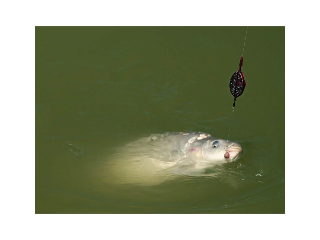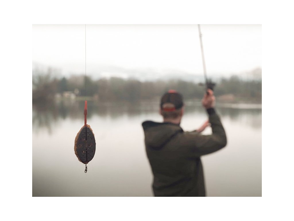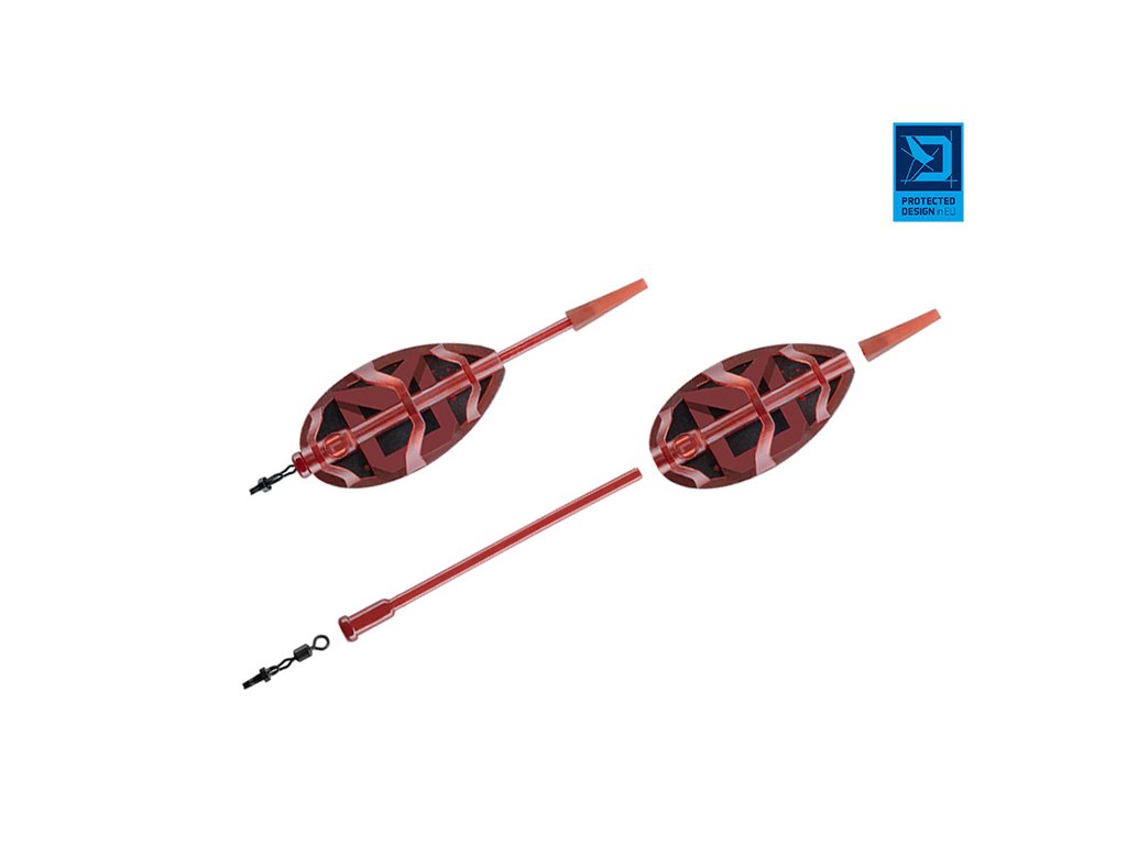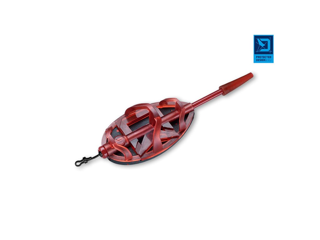Punc originality dodáva produktu typická bordová farba a čierne závažie fŕkané červenými škvrnami. V základe je krmítko dodávané s rýchlovýmenným obratlíkom s poistkou a gumičkou proti zamotaniu.