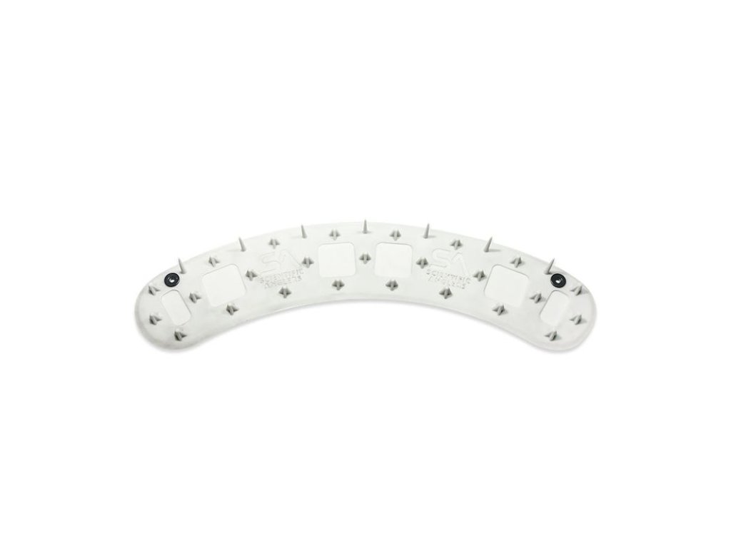 - Na vedenie muškárskej šnúry na palubách lodí a rovných povrchoch - Vyrobené zo silikónu odolného voči UV žiareniu s plastovými priechodkami. Táto podložka sa potopí, ak ju hodíte cez palubu, v prípade potreby sú k dispozícii priechodky na priviazanie. - Zakrivená konštrukcia s rozmermi 37" x 6" (94 x 15 cm), zameraná na rybára, zachytáva vlasec pri pohybe alebo zmene uhla nahadzovania. - 2,25 palca (5,7 cm) vysoké hroty na vonkajšom okraji zachytávajú bludný letiaci vlasec, zatiaľ čo kratšie, zúžené kužele na vnútornej strane zabraňujú zamotaniu vlasca do seba. - Vyrobené v USA