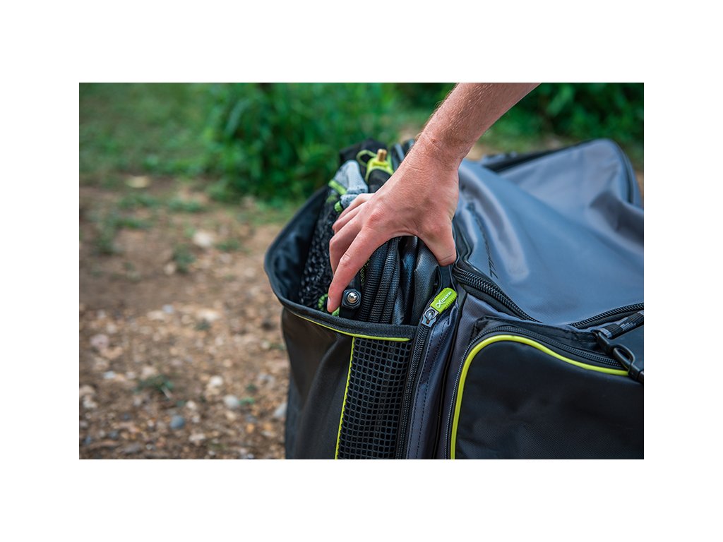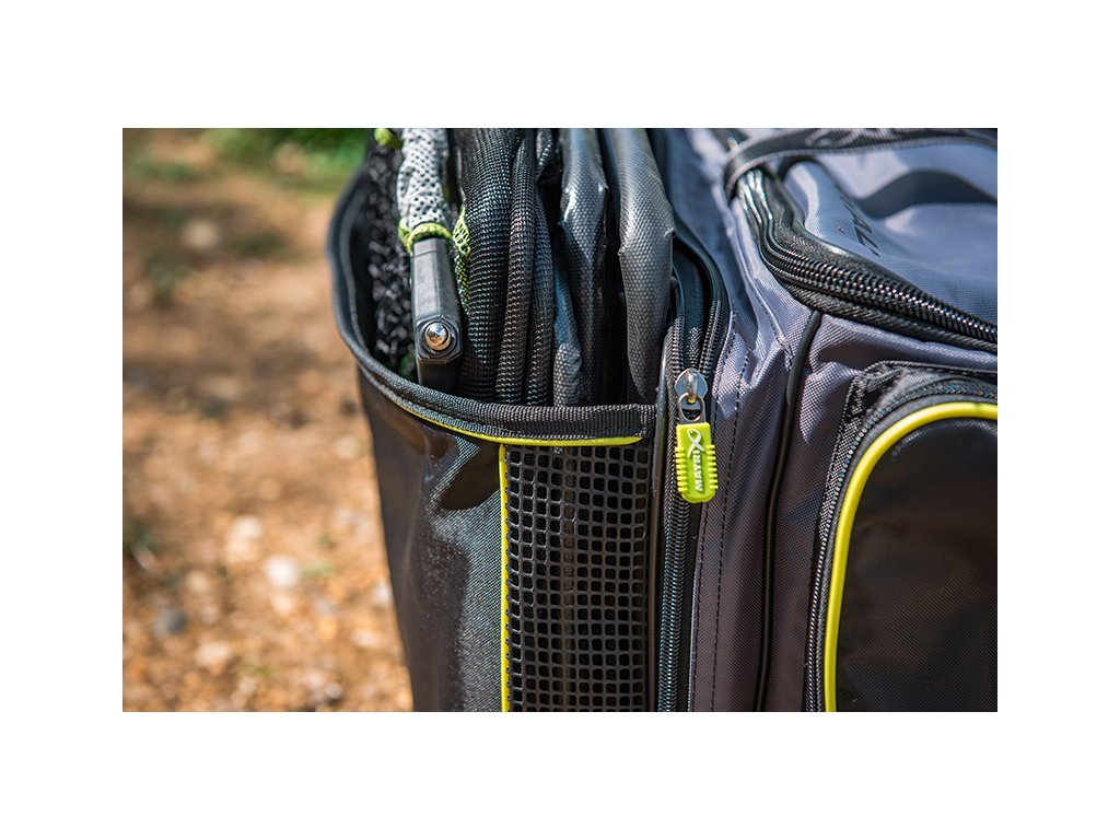 - Vonkajšia priehradka na zips na uloženie viazača, sietí a postranných stolíkov