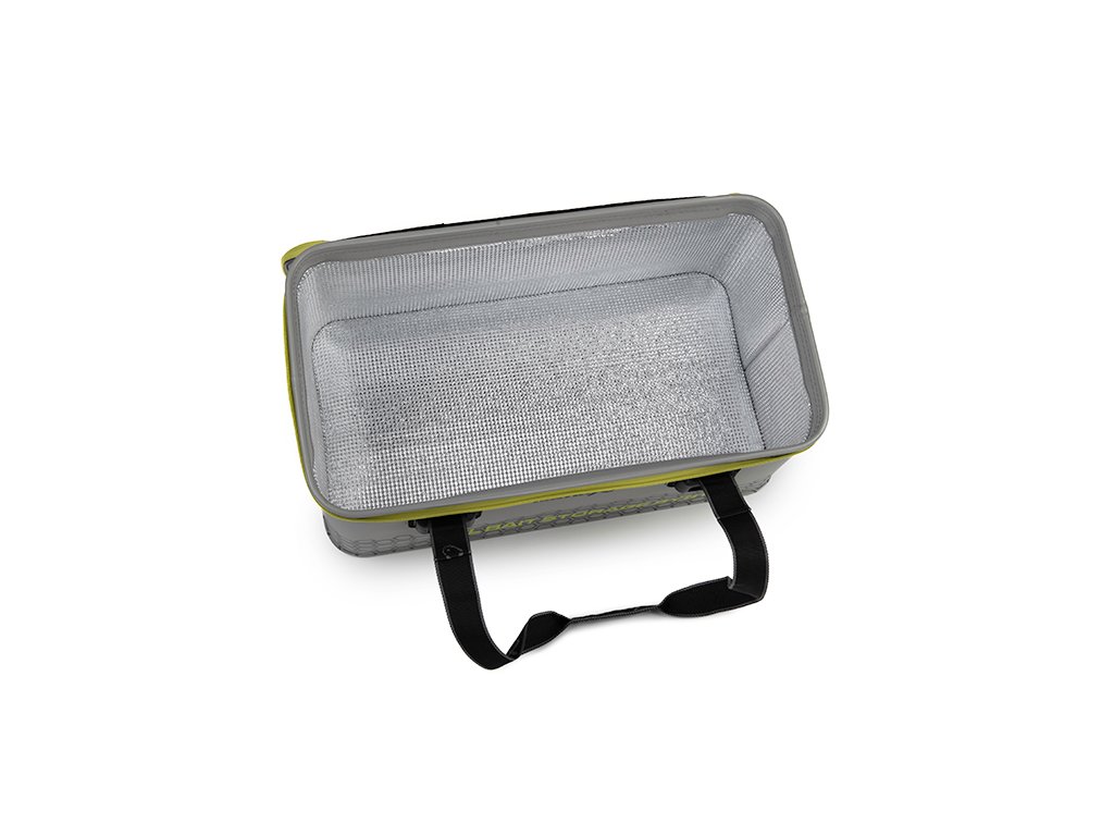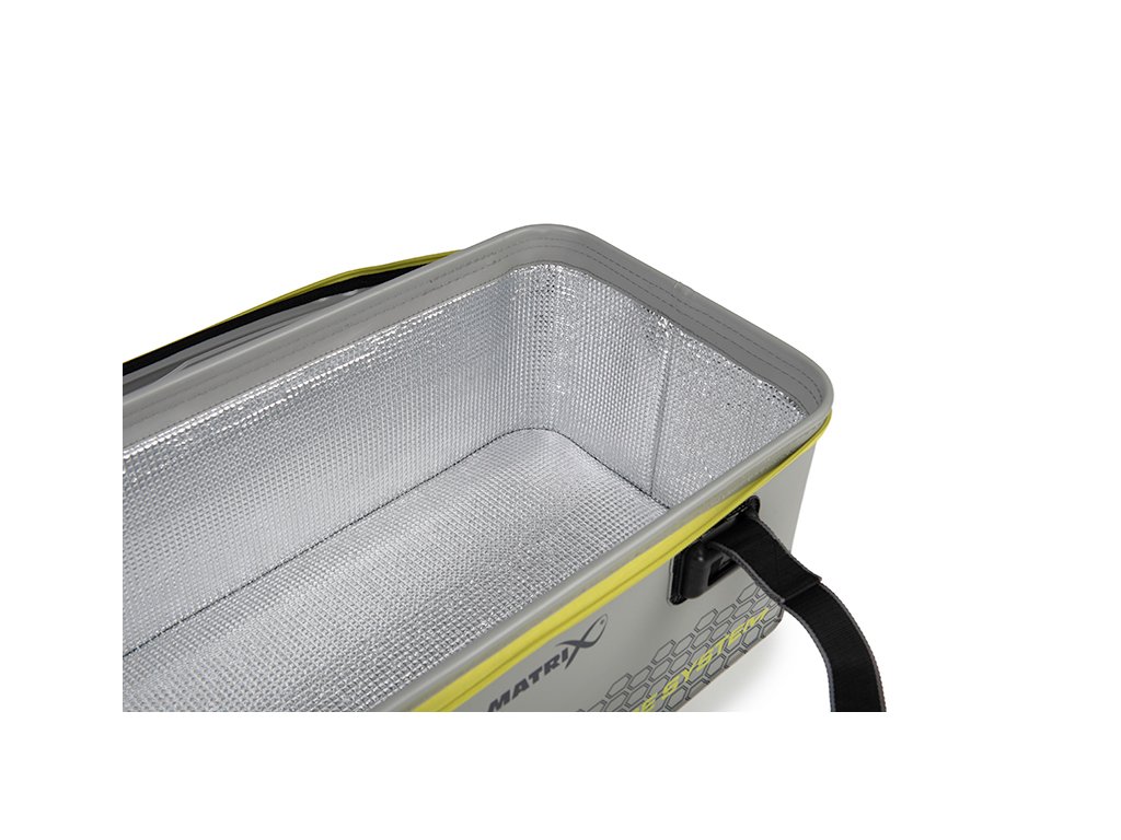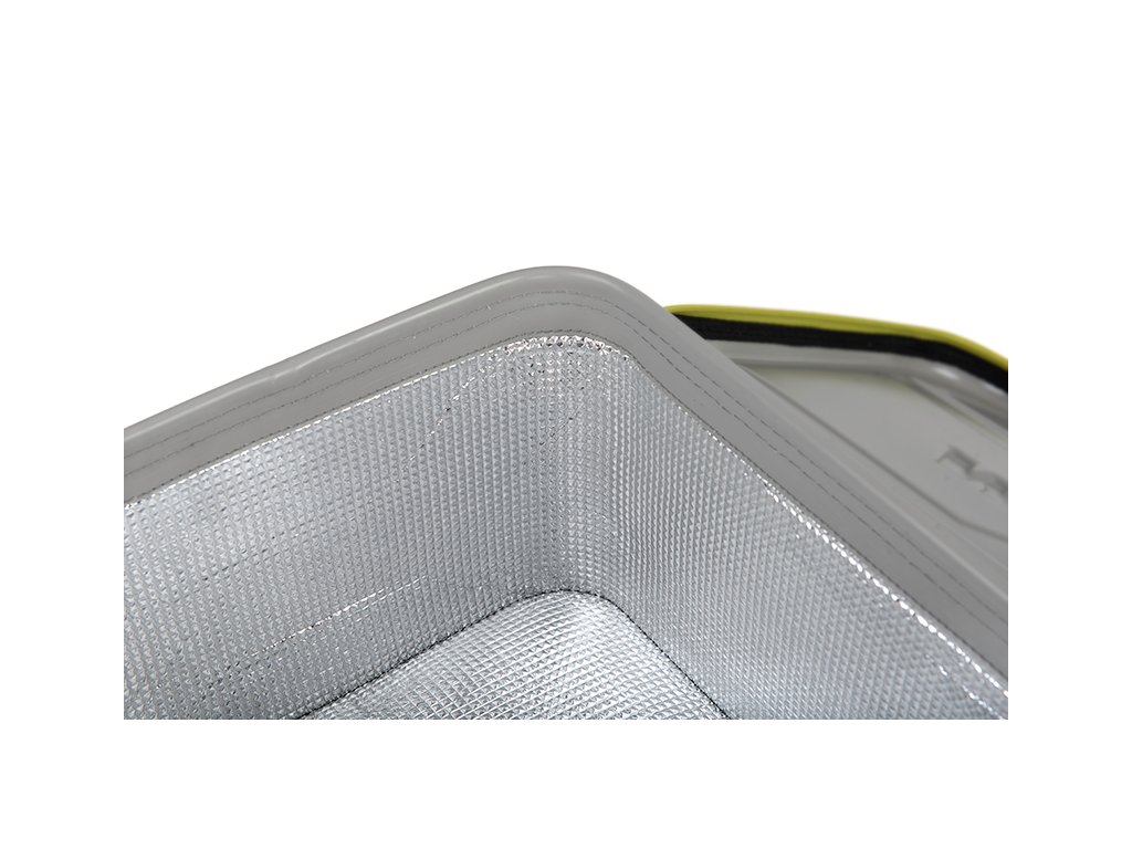 - Svetlosivá farba materiálu EVA a vnútorná termofólia udržuje obsah chladný