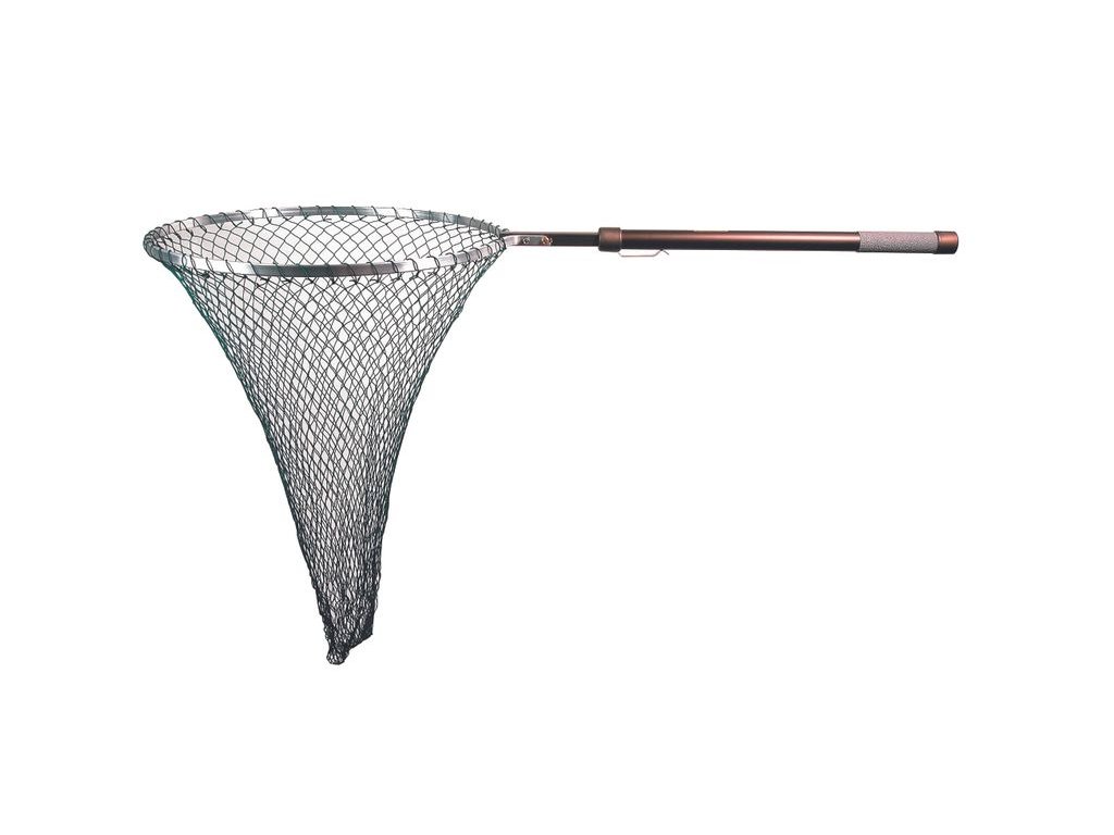 - Belt clip - Non slip handle rubber grip - Soft woven knotless nylon net bag Maximum extended length: 133 cm Minimum length: 53 cm Frame size: 42 x 43 cm Net bag depth: 68 cm