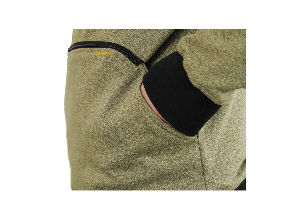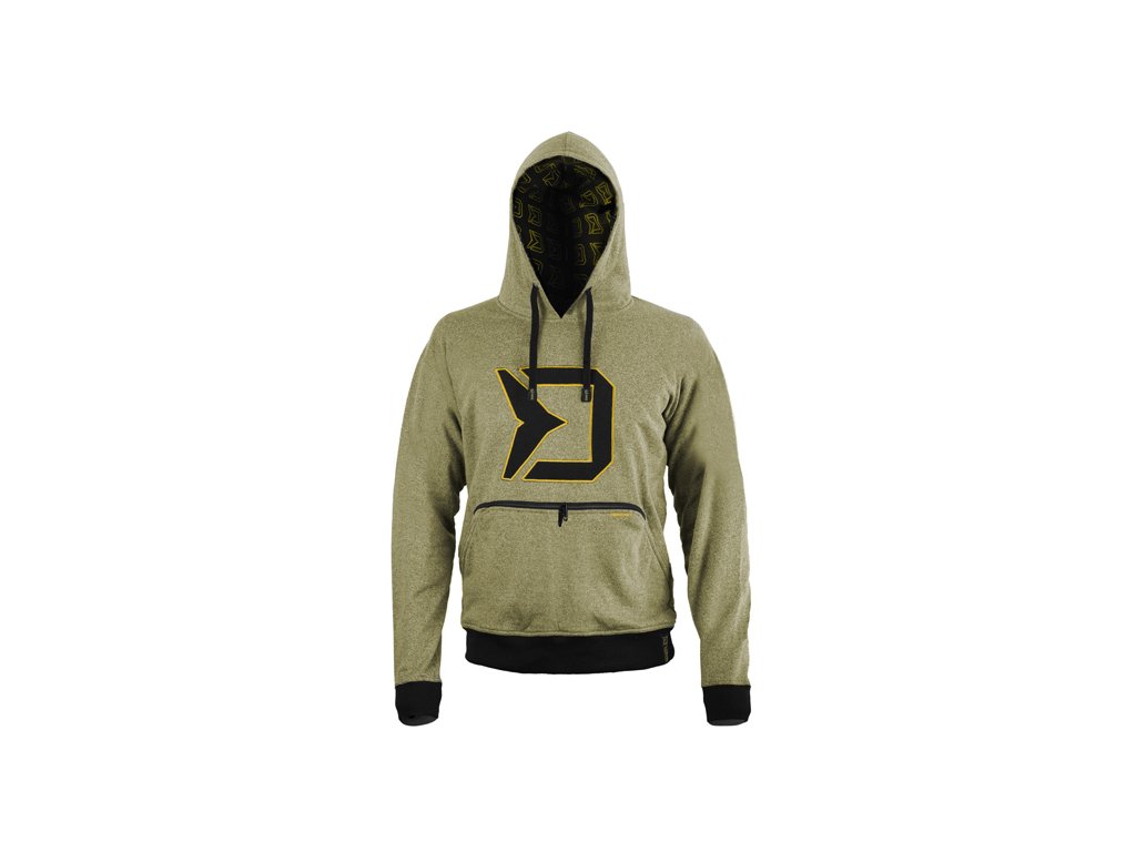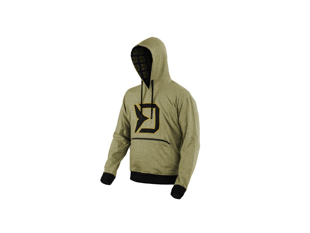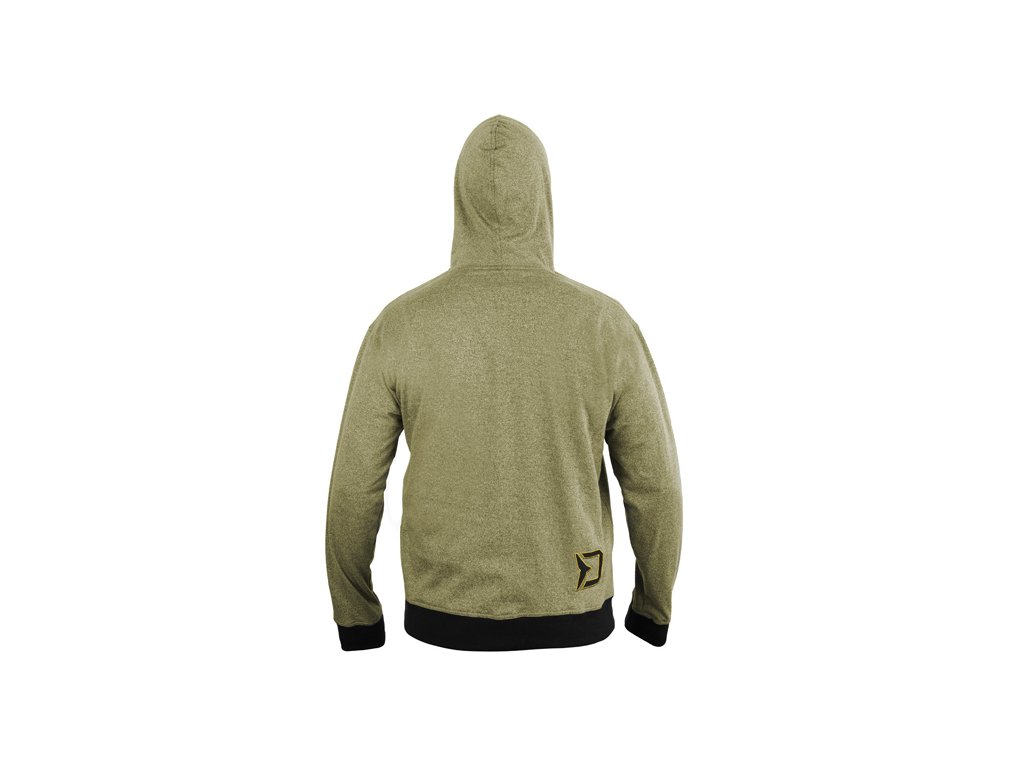 Mikina Delphin RAWER ONE TacklePocket je séria štýlových mikín s kapucňou, ktorá prináša novú dimenziu komfortu. Dostupné sú v tmavozelenej farbe a doplnené o čierne manžety na páse a rukávoch. Poznávacím znakom tejto série bude rozhodne priestranné vrecko TacklePocket na dvojitý zips v prednej časti, ktoré bolo navrnuté tak, aby si tam rybár mohol pohodlne odložiť všetko, čo potrebuje mať poruke. O vysokej kvalite tohto produktu svedčí aj použitie špičkových zipsov značky YKK. Ťaháčiky zipsov sú doplnené o logo Delphin. Tam, kde oba konce zipsu končia, po oboch stranách dômyselne nadväzujú otvory pre vloženie rúk do priestoru za vreckom, kde si viete ohriať vaše ruky, ak je von chladno. Vpredu nájdeme veľké logo Delphin, vkusne olemované zelenou farbou. Vzadu na pravom boku nájdeme rovnaké logo malých rozmerov. Kapucňa je z vnútornej strany doplnená o čiernu látku s potlačou loga Delphin. Kapucňu viete stiahnuť jednoducho šnúrkami čiernej farby, na ktorých koncoch sa nachádza našité logo Delphin RAWER. To isté logo vo väčšom rozmere nájdeme našité aj na manžete vpredu dole na ľavej strane.Nosiť ich môžete nielen k vode, ale vhodné sú aj na bežné nosenie. Mikina je vyrobená z príjemného hrejivého materiálu a vyznačujú sa kvalitným spracovaním detailov, a preto bude vaším pohodlným spoločníkom, aj keď práve nebudete loviť ryby.
