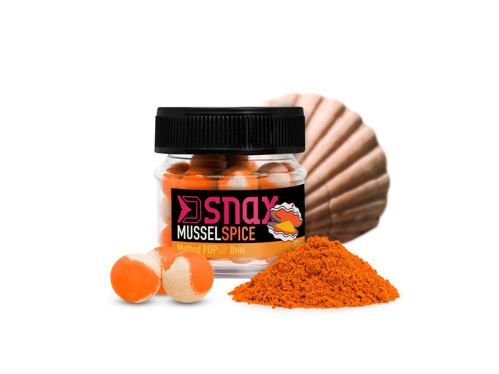 Charakteristická mušľová aróma podčiarknutá korením. Spojenie osvedčených príchutí do netradičnej oranžovo-bielej kombinácie, ktorá funguje na väčšine vôd a dokáže oklamať aj väčšie ryby.