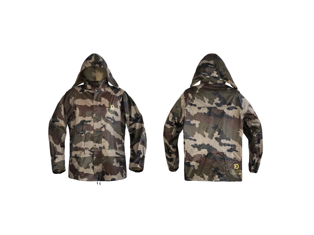 Do daždivých dní je tu nepremokavý komplet Delphin PROOF, ktorý Vás dokonale ochráni pred nepriazňou počasia a prekvapí svojimi kompaktnými transportnými rozmermi. Je vyrobený z vodeodolnej pogumovanej tkaniny s podlepenými švami a maskáčovým vzorom.Bunda