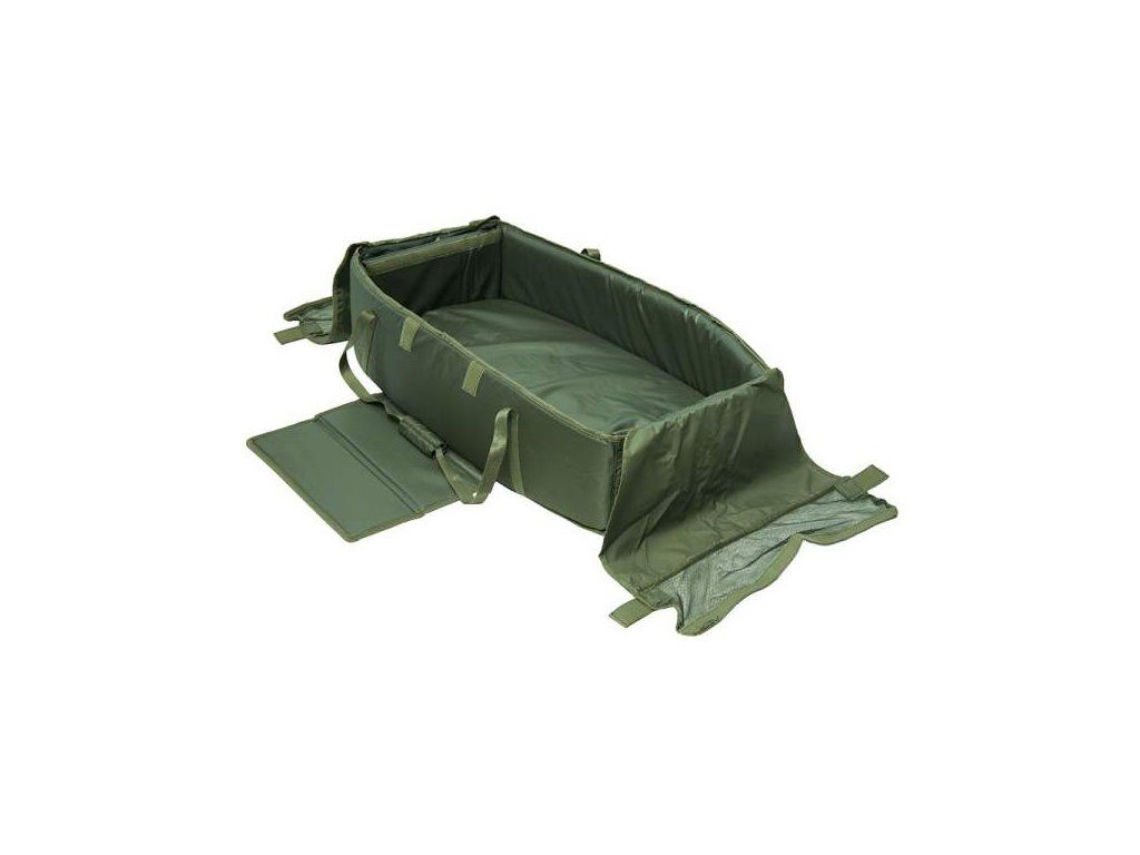 Excelentní podložka ideální pro odháčkování a vypuštění ryby zpět do vody. Postranice a dno jsou dobře polstrované, aby se v žádném případě nepoškodila ryba. Plovoucí výplň napomáhá vypuštění kapra zpět do vody. PVC potah zamezuje poškození šupin kapra a je dobře omyvatelné. Vršek podložky má zavírání na suché zipy a zamezuje poškození kapra, když se příliš plácá. Podložka může být napuštěna velkým množstvím vody, aby se zabránilo dehydrataci kapra. Díky bytelným držadlům, které jsou podšity pod podložkou je možno podložku použít i jako vážící sak.Skvělým doplňkem je boční kapsa na metr, váhu a jiné potřeby.