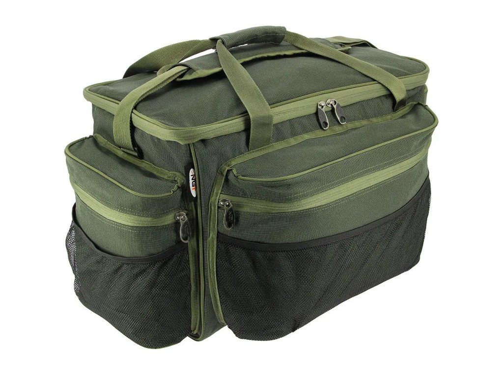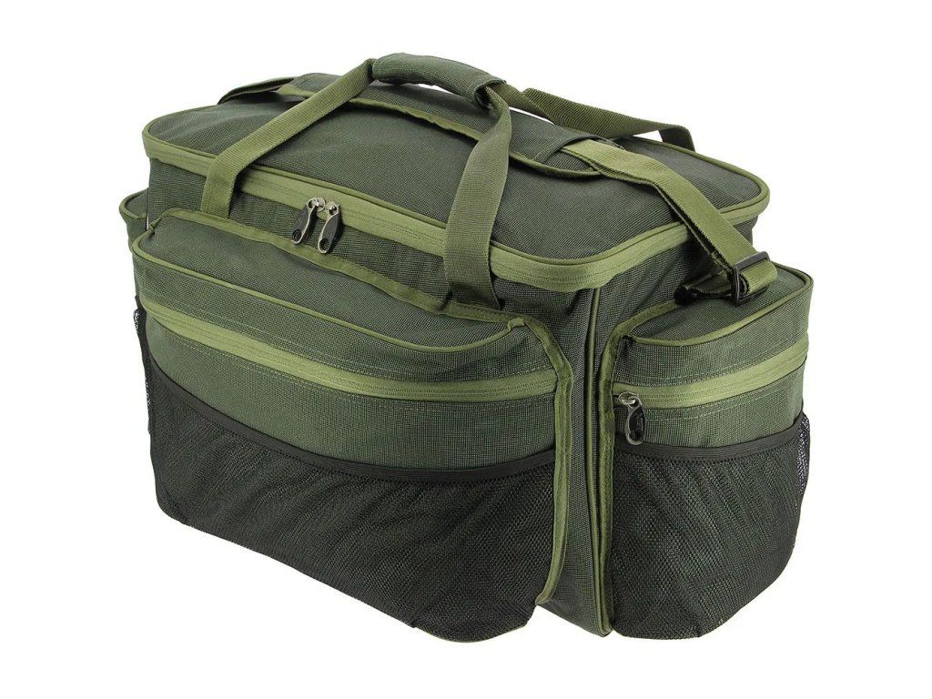 Velká přenosná taška pro rybáře s prostornou hlavní přihrádkou a třemi velkými vnějšími kapsami na zip a ze síťoviny. Samozřejmostí jsou polstrované rukojeti a nastavitelný ramenní popruh s polstrováním.