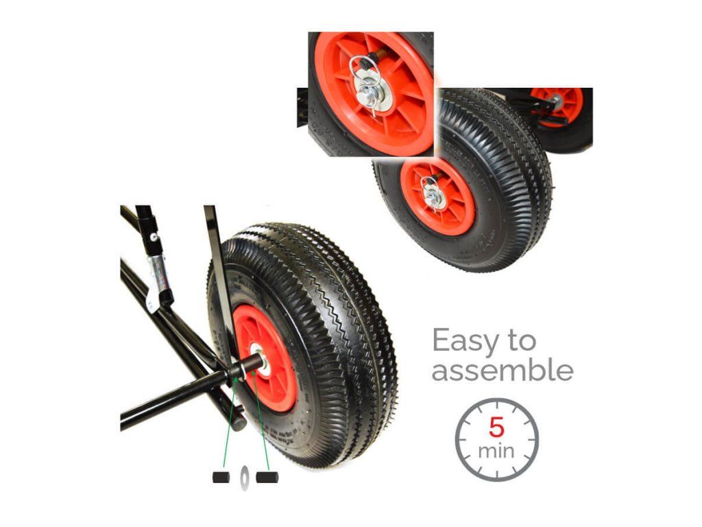 Rybářský vozík NGT Quickfish Trolley je novinka od NGT, jedná se o kompaktní vozík s nafukovacími koly o průměru 25 cm a pevnou ocelovou konstrukcí, který je ideálním pomocníkem na krátké výpravy. Vozík je neocenitelným pomocníkem v případě, že se Vaše lovné místo nachází na vzdáleném místě a vozidlem nepřístupném terénu. Jeho malé transportní rozměry zabírají ve vozidle minimum prostoru, přesto však s přehledem odveze potřebné rybářské vybavení na časově kratší vycházky. Ocelová konstrukce je dostatečně pevná a odolná, a tak vozík uveze téměř vše co se na něj vejde. Na bocích je vozík opatřen dvěmy sklopnými bočnicemi, které rozšiřují úložnou plochu a také slouží k lepší fixaci přepravovaného vybavení. Dostatečně velká a široká nafukovací kola v kombinaci s malými rozměry vozíku spolehlivě zajistí pohodlný pohyb těžším terénem, zarostlými cestami, přes nerovnosti ale i blátem, případně sněhem. Manipulaci s vozíkem a transport vybavení ještě zpříjemní a usnadní EVA úchop a snadno výškově nastavitelné madlo, které si nastavíte přesně dle potřeby. NGT Quickfish Trolley Vás tedy zcela jistě velmi mile překvapí svými kompaktními rozměry a díky pevné konstrukci a velkým kolům Vám při přesunu výbavy od vozu na lovné místo vykouzlí úsměv na tváři.