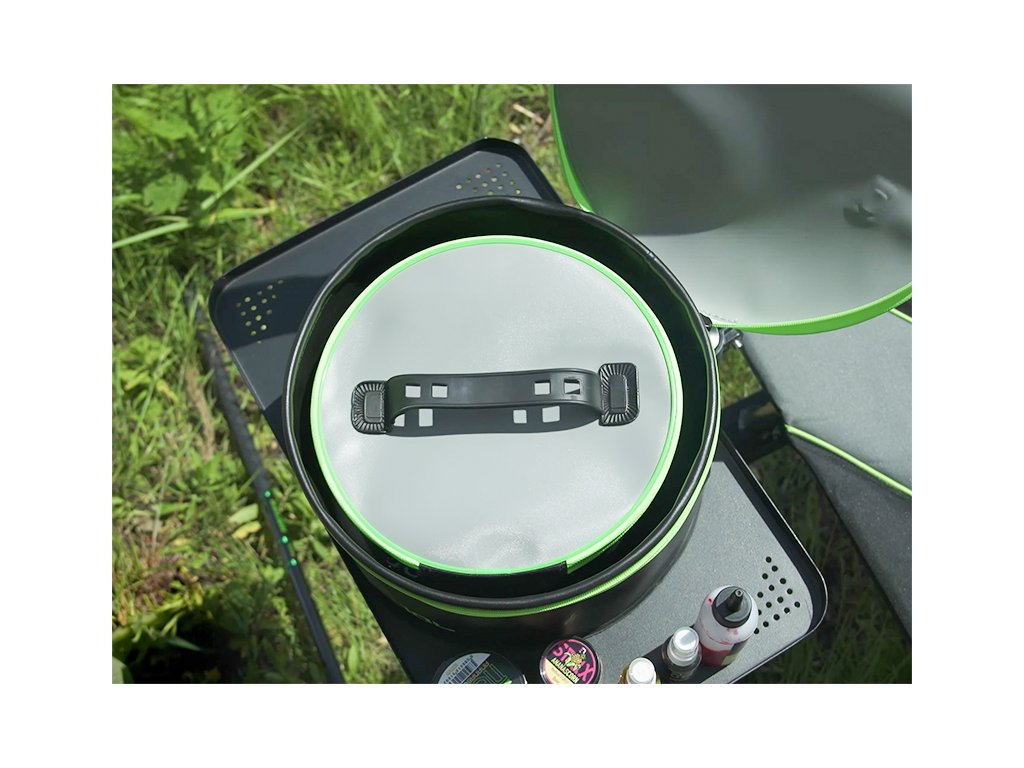 Je praktická univerzálna taška určená najmä pre vyznávačov feedru a method feedru. Svoje uplatnenie si však určite nájde aj medzi kaprármi alebo plavačkármi. Tašku možno použiť na prenos či prípravu vnadiacich zmesí, ale aj ako úložný priestor pre rôzne rybárske vybavenie a pomôcky. Okrúhly tvar tašky umožňuje jednoduchú prípravu vnadiacich zmesí, partiklu či peliet a ich jednoduché naberanie. Absencia rohov umožňuje dokonale rozmiešanie a prevlhčenie celého objemu zmesi pre dokonalú konzistenciu a maximálny efekt. Taška je vyrobená z odolného EVA materiálu, ktorý je plne vodeodolný a jednoducho umývateľný. Výhodou tašky je veko s kvalitným zipsom s dvomi bežcami, ktoré umožňuje udržiavať optimálnu vlhkosť zmesi aj počas dlhých rybačiek. Navyše je puzdro opatrené popruhom pre jednoduché prenášanie. Puzdro je ladené do farieb závodnej feedrovej série REAXE z dielne Delphin.Technické parametre: