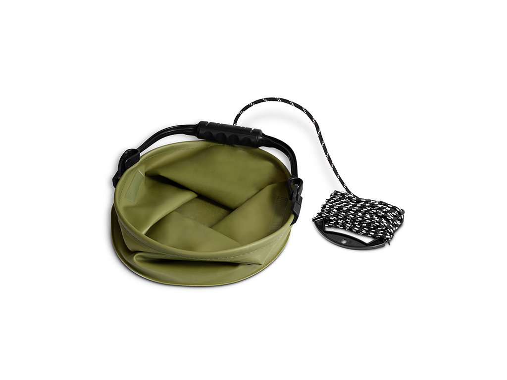 Delphin BAREL je užitočná pomôcka vyrobená z vodeodolného EVA materiálu, ktorý je pružný a ohybný a teda si vaše vedro viete poskladať na úplne minimálne rozmery. Slúži hlavne na polievanie rýb na podložke tesne po ich zdolaní a počas fotenia, avšak môže byť využité tiež ako malá zásobáreň vody na rôzne účely ako miešanie krmiva, alebo umývanie rúk a tiež ako ktorékoľvek iné vedro na uskladnenie náčinia, nástrah a podobne. Vedro BAREL je doplnené o pevnú rukoväť čiernej farby s povrazom, pomocou ktorého je možné nabrať si vodu aj z väčšej vzdialenosti od brehu alebo z menej prístupného brehu, či člna.Technické parametre: