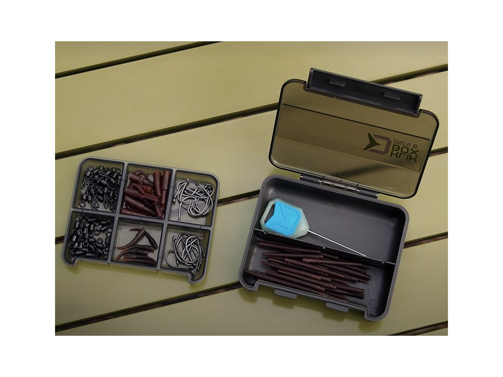 Mini 8 je najkompaktnejším organizérom zo série plastových boxov s názvom KlikBOX. Jeho vnútorný priestor umožňuje prehľadné uloženie bižutérie, či iných drobných komponentov vašej výbavy.Vo vnútri sa nachádzajú dve pevné priehradky podlhovastého tvaru, vhodné napríklad na gumičky proti zamotaniu či zmršťovacie bužírky. Veľkou výhodou je vyberateľná časť s ďalšími šiestimi priehradkami, ktoré sa dokonale hodia na uloženie obratlíkov, háčikov, rovnátok a iných prvkov určených na prípravu koncovej montáže.