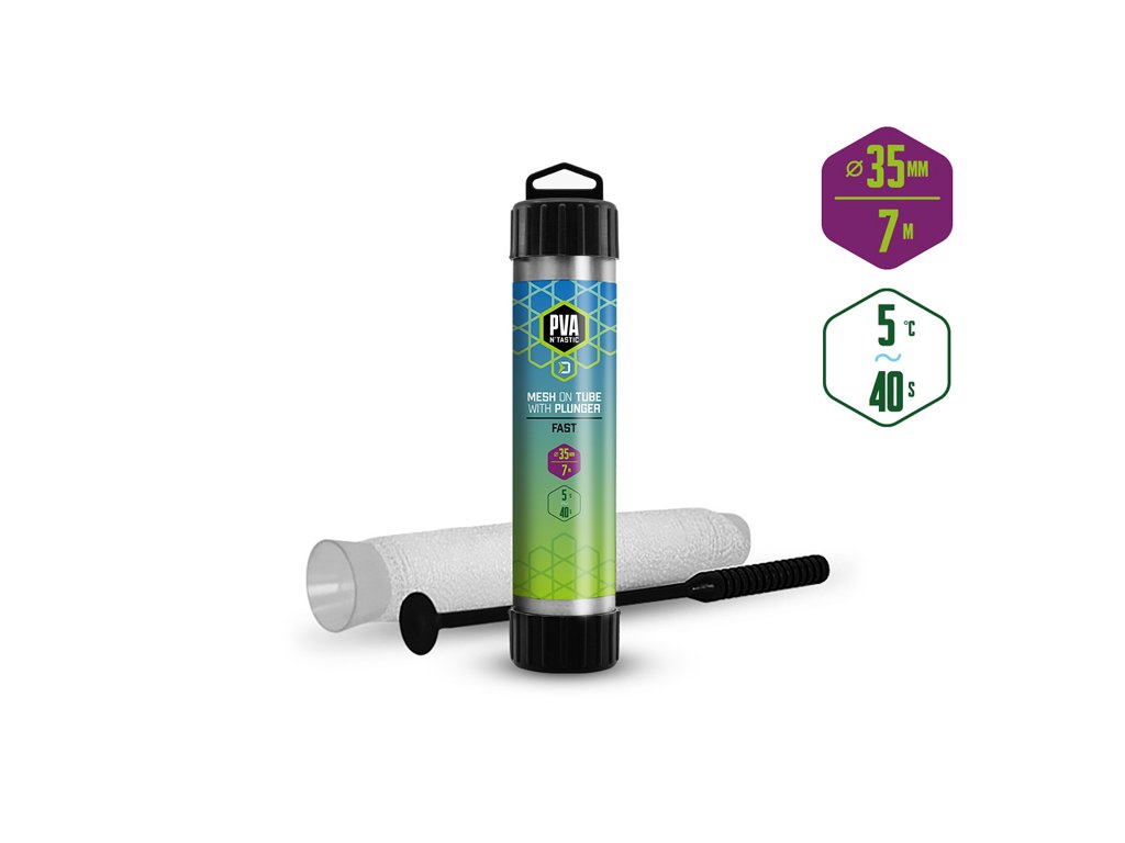 PVA pančucha s kratšou dobou rozpadu je ideálna na lov počas chladnejších mesiacov, alebo pri love v plytších hĺbkach, kde montáž klesá kratšie ku dnu. Ide o vysokokvalitný produkt, pri ktorom vďaka dôkladnému pleteniu nedochádza k svojvoľnému trhaniu pančuchy a zároveň sa výborne plní aj veľmi jemnými časticami, čím budete môcť spolu s nástrahou poslať do vody aj maximálne atraktívnu návnadu priamo na montáži.Súčasťou balenia je tuba a tĺk, ktoré umožňujú jednoduché plnenie pančuchy vnadiacou zmesou.
