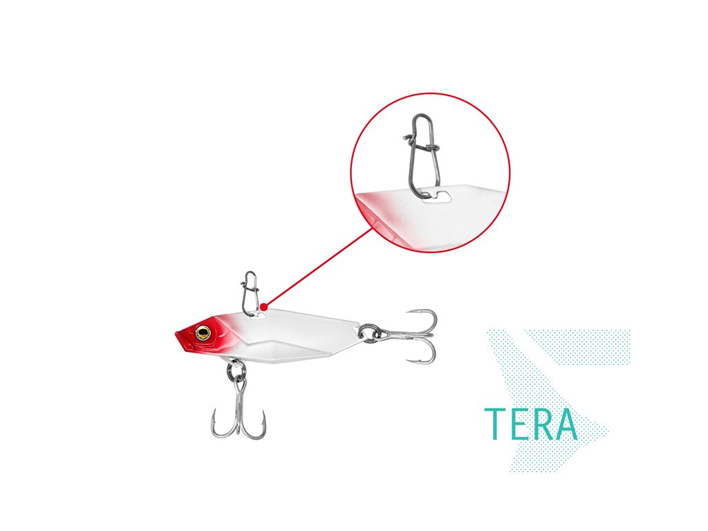 Delphin TERA je špeciálna nástraha na lov dravých rýb, ktorej najsilnejšou zbraňou sú vibrácie. Precízne upravené telo nástrahy sa pri ťahu rozkmitá a vo vode zanecháva silné vlnenie ktoré dokáže prilákať ryby aj z veľkých vzdialeností. Silu vibrácií je možné redukovať umiestnením FAST LOCK SNAPu do dvoch zárezov na chrbte, alebo rýchlosťou vedenia nástrahy. Silueta nástrahy pripomína malú rybku ktorú dokonale dopĺňajú 3D oči, čím dodávajú nástrahe realistický vzhľad. TERA je vybavená dvomi kvalitnými trojhákmi so špeciálnou úpravou hrotov Cutting point, ktorý zabezpečí ľahšie preniknutie háku aj do tej najtvrdšej tlamy našich dravcov. Odolnejšie a pevnejšie háky sme zvolili kvôli tomu, že silné vibrácie častokrát prilákajú aj kráľa hlbín, sumca. Háčiky sú osadené na krúžkoch aby pri záseku boli háky pripravené na 100%. Nástraha TERA doplní vašu výbavu o veľmi zaujímavý kúsok, ktorý je atraktívny aj v tých najväčších mrazoch a taktiež je vhodný aj pre lov na vertikálnu prívlač.Technické parametre: