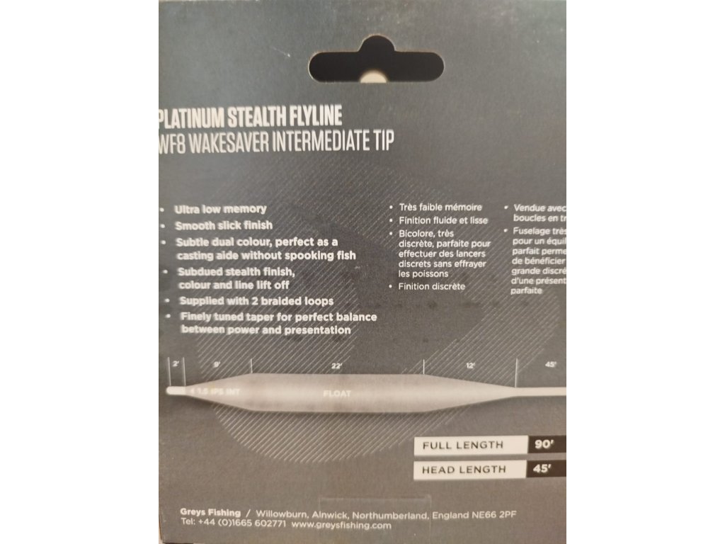 Muškárska šnúra Greys Platinum Shoot je určená pre všetkých muškárov, ktorí hľadajú kvalitnú značkovú muškársku šnúru s výhodným pomerom ceny a výkonu. Pre tieto účely vyrobila značka Greys model muškárskej šnúry s názvom STEALTH - model Wakesaver , vhodnú na takmer každý druh lovu. Hlava je plávajúca s potápavým koncom. Hlava má 135cm a z toho je intermediálny kus 27cm.