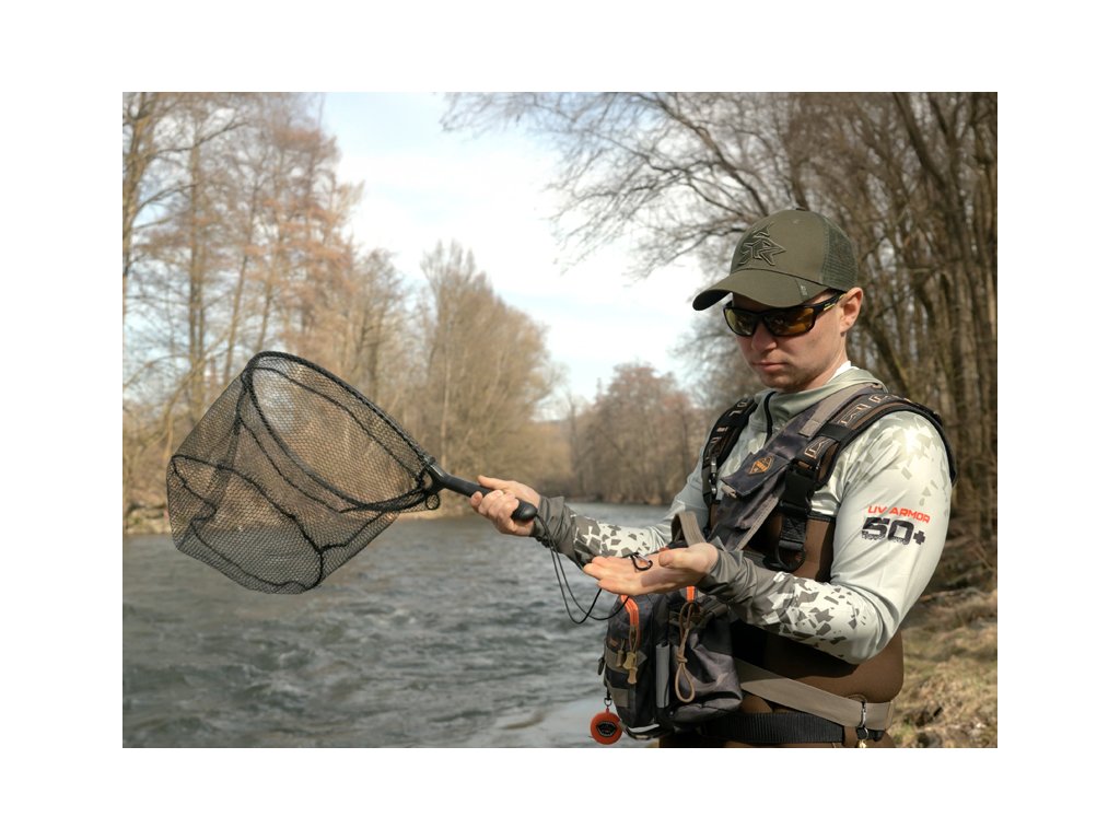 Vďaka kompaktným rozmerom je Delphin SHORX ako stvorený na brodenie. Môžete ho pohodlne nosiť pomocou magnetu na prívlačovej veste, chestpacku alebo ruksaku. Na konci rukoväte sa nachádza elastický popruh s karabínou, ktorý slúži na uchytenie o opasok či vestu, čím zabránite strate podberáka počas presunov a brodenia.
