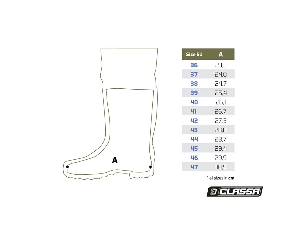 Gumené čižmy s odolnou a stabilnou podrážkou vám umožnia pohodlné brodenie v rôznych podmienkach. Samozrejmosťou sú aj výčnelky v oblasti päty pre ľahšie vyzúvanie.