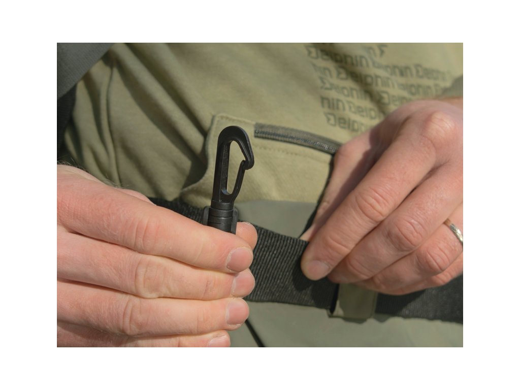 Rukoväť z EVA peny zabezpečuje spoľahlivý a komfortný úchop aj s mokrými rukami. Tento materiál je nenáročný na údržbu, rýchlo schne a ľahko sa čistí. Praktickým doplnkom je integrovaný vyťahovací popruh s karabínou, vďaka ktorému podberák jednoducho prichytíte na opasok, batoh alebo prívlačovú vestu, takže ho máte pri love vždy po ruke.
