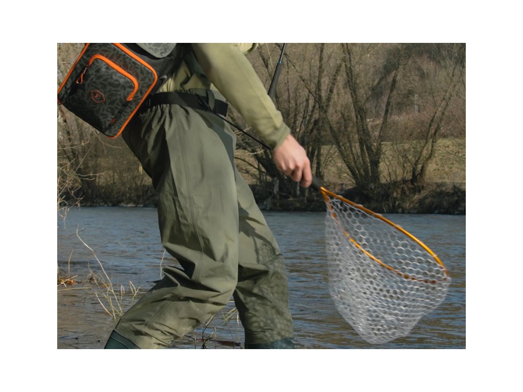 Profesionálny podberák s pevným kovovým rámom a extra mäkkou transparentnou sieťkou, navrhnutý špeciálne pre priaznivcov lovu lososovitých rýb a vyznávačov lovu chyť a pusť. Elegantné vyhotovenie a funkčné detaily z neho robia kúsok výbavy, ktorý ocenia aj tí najnáročnejší rybári vyžadujúci kvalitu a šetrný prístup k úlovku.Pevný rám z ľahkého kovového materiálu zaručuje vysokú odolnosť voči mechanickému poškodeniu pri transporte aj samotnom používaní v náročných podmienkach. Celková konštrukcia je dimenzovaná tak, aby si zachovala dlhú životnosť pri častom používaní.