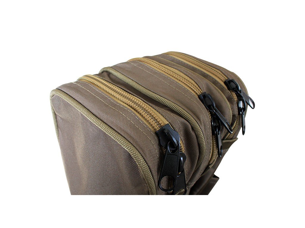 Na bočnej strane sa nachádzajú dve vrecká (25x22x4cm) do ktorých je možné uložiť krabice s bižutériou, okuliare, lampy, kliešte, signalizátory a kopec iného príslušenstva. Druhá strana púzdra obsahuje extra dlhé vrecko so zipsom, ktoré slúži napríklad na transport rybárskeho podberáku. Na ňom sú našité uloženia na rázsošky aj so sťahovacou páskou. Toto puzdro tak pojme väčšinu ťažko skladného rybárskeho náčinia.