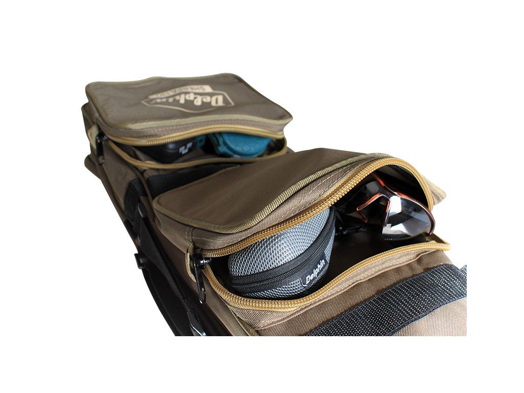 Toto 2.5 komorové, špičkovo vypracované, nepolstrované puzdro na prúty Delphin SHERPA je presne to po čom túži každý rybár. Dostatok miesta, ľahkosť, pevnosť a odolnosť, robia z tohto puzdra jednotku vo svojej triede. Vďaka použitiu tých najkvalitnejších materiálov je puzdro SHERPA vysoko odolné voči hrubšiemu zaobchádzaniu. Použité zipsy prešli mnohými testami ktoré potvrdili ich vysokú pevnosť a silu. Kvalitné prepracovanie švov zaručuje puzdru dlhú životnosť. Toto puzdro má dva spôsoby nosenia. Prvým je nosenie pomocou pohodlných úchopov v ruke a druhý spôsob je prevlečenie mäkkých popruhov cez plecia a komfortné nosenie puzdra na chrbte.SHERPA obsahuje dve hlavné komory do ktorých je možné s ľahkosťou vložiť 2, najmä teleskopické prúty spolu s navijakmi. Obsahuje aj tretiu, tzv. polovičnú komoru, ktorá taktiež pojme napríklad teleskopický prút ale bez navijaka. Táto tretia komora uskladní aj rôzne iné rybárske príslušenstvo. Jednotlivé komory sú samozrejme oddelené prepážkami.